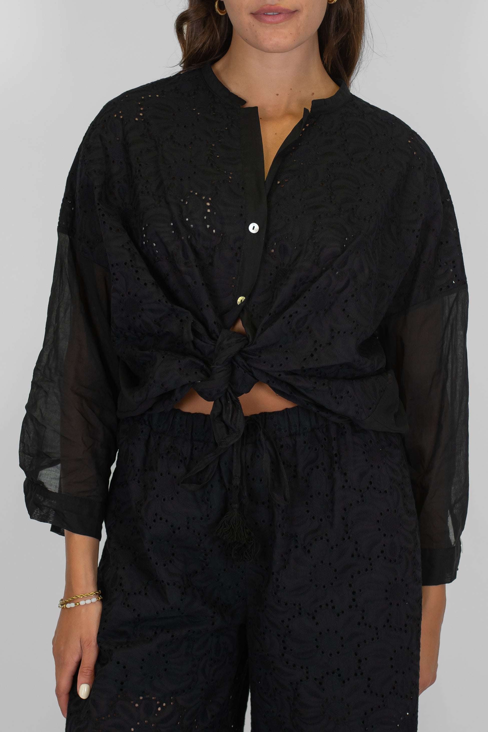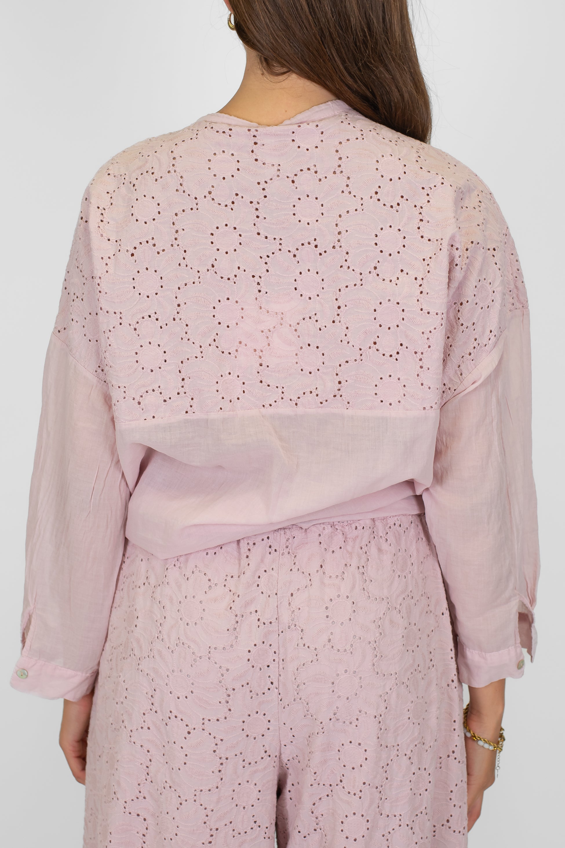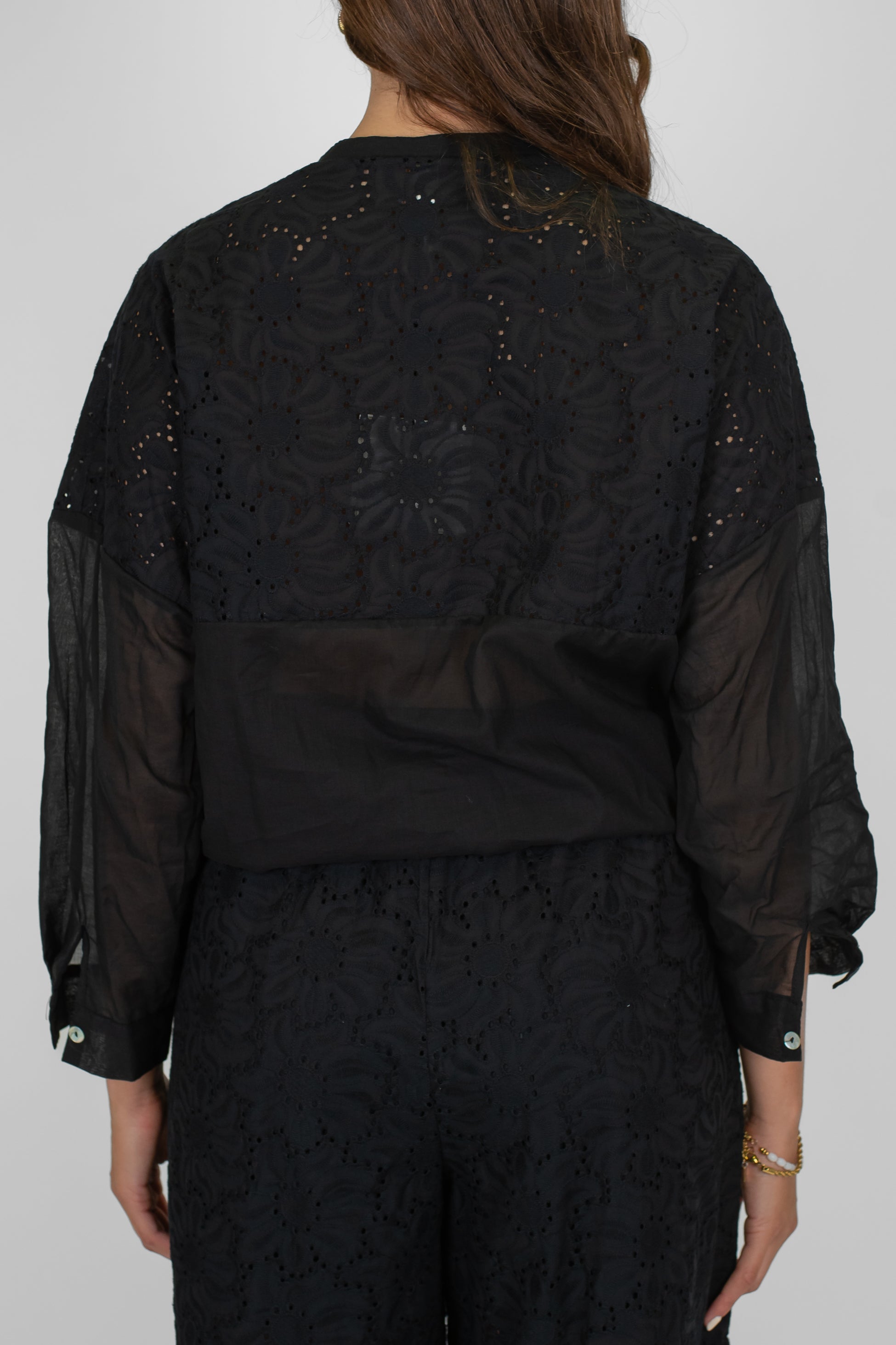 Tensione in - Camicia con tasconi sul petto e fondo in pizzo