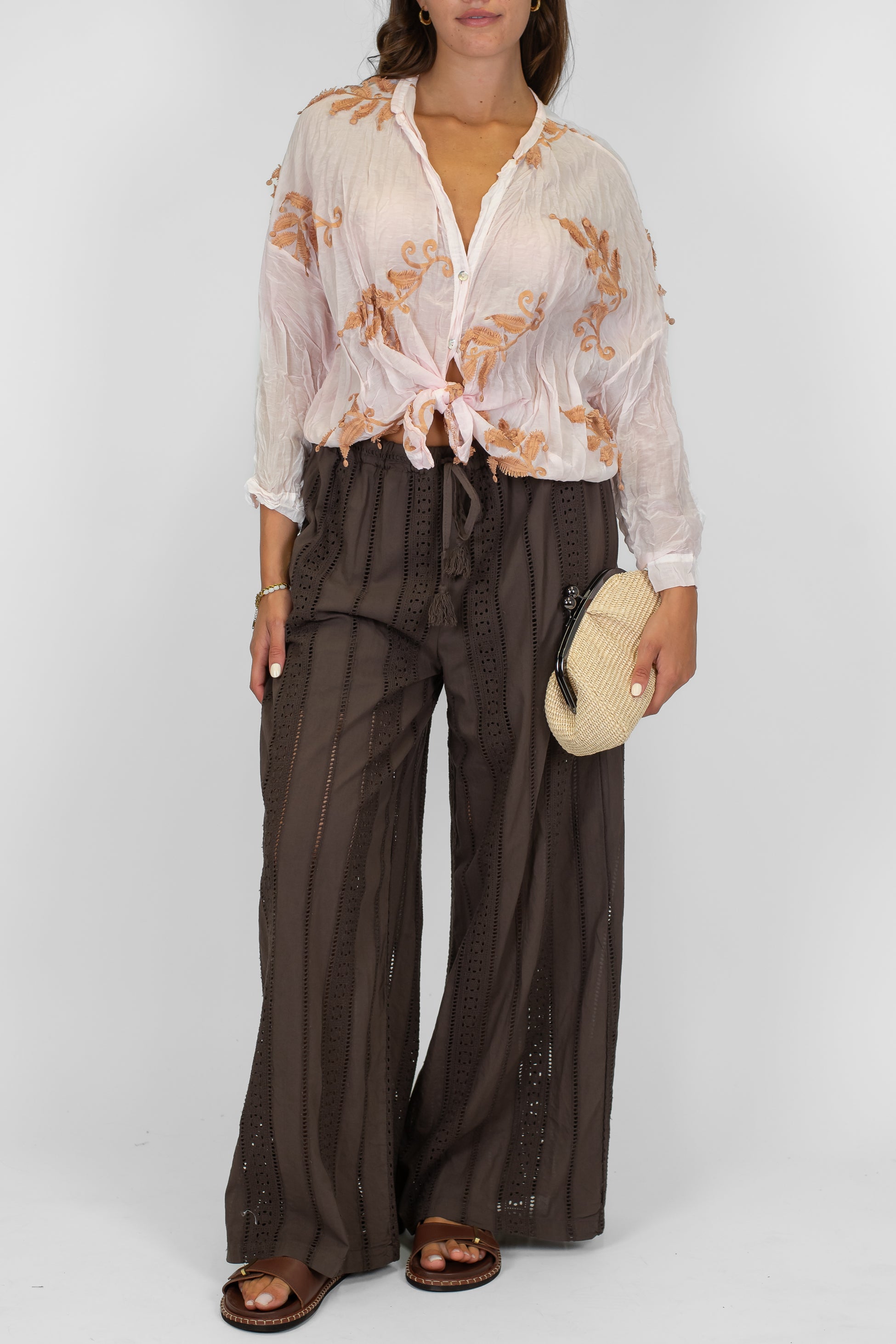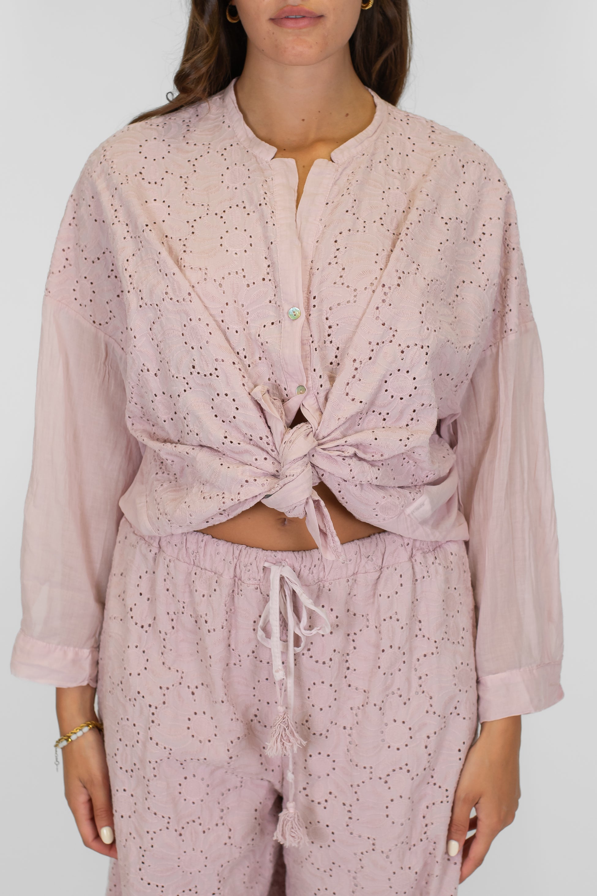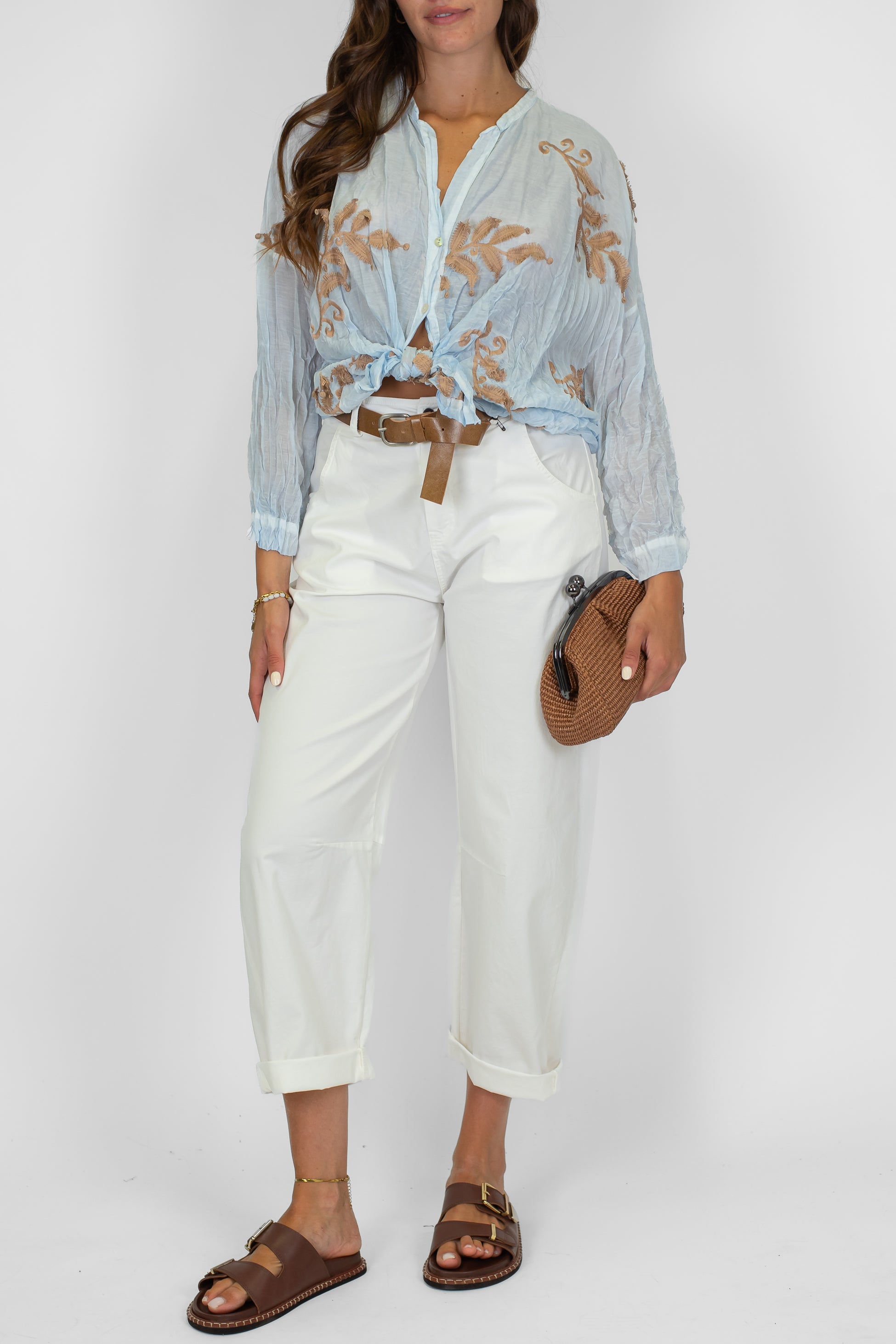 Tensione in - Camicia con tasconi sul petto e fondo in pizzo