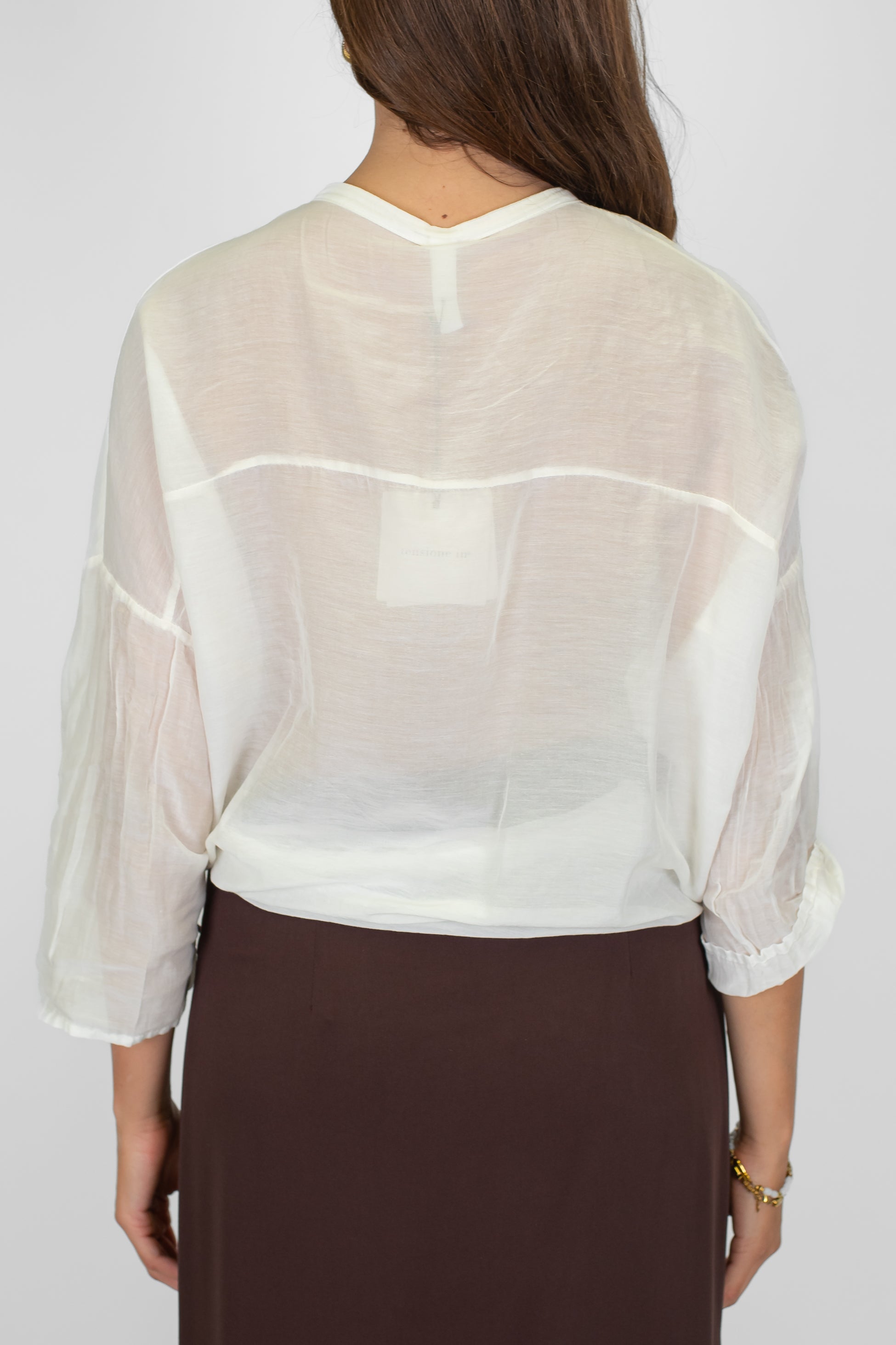 Maryley - Blusa con drappeggio e fondo asimmetrico