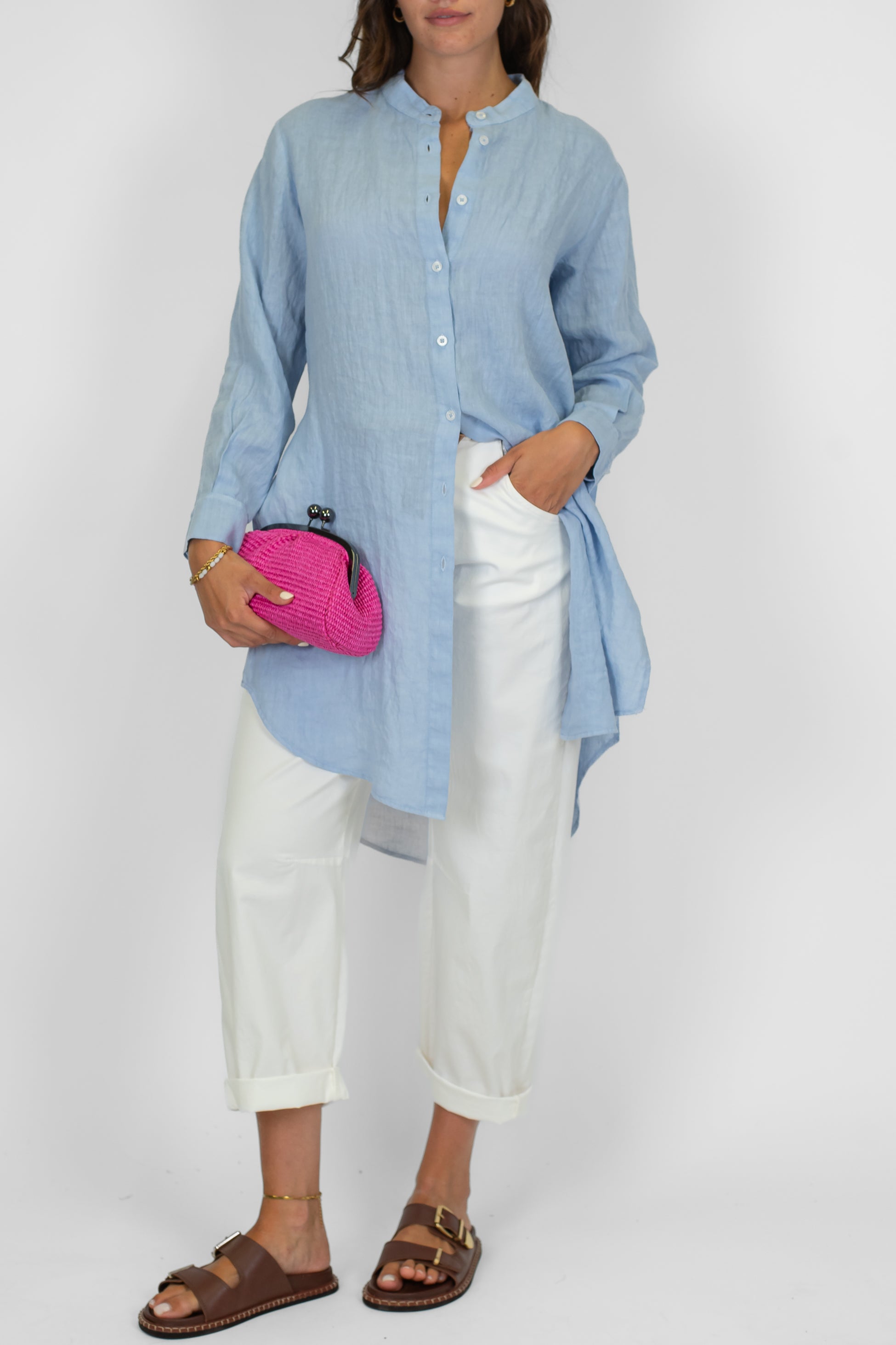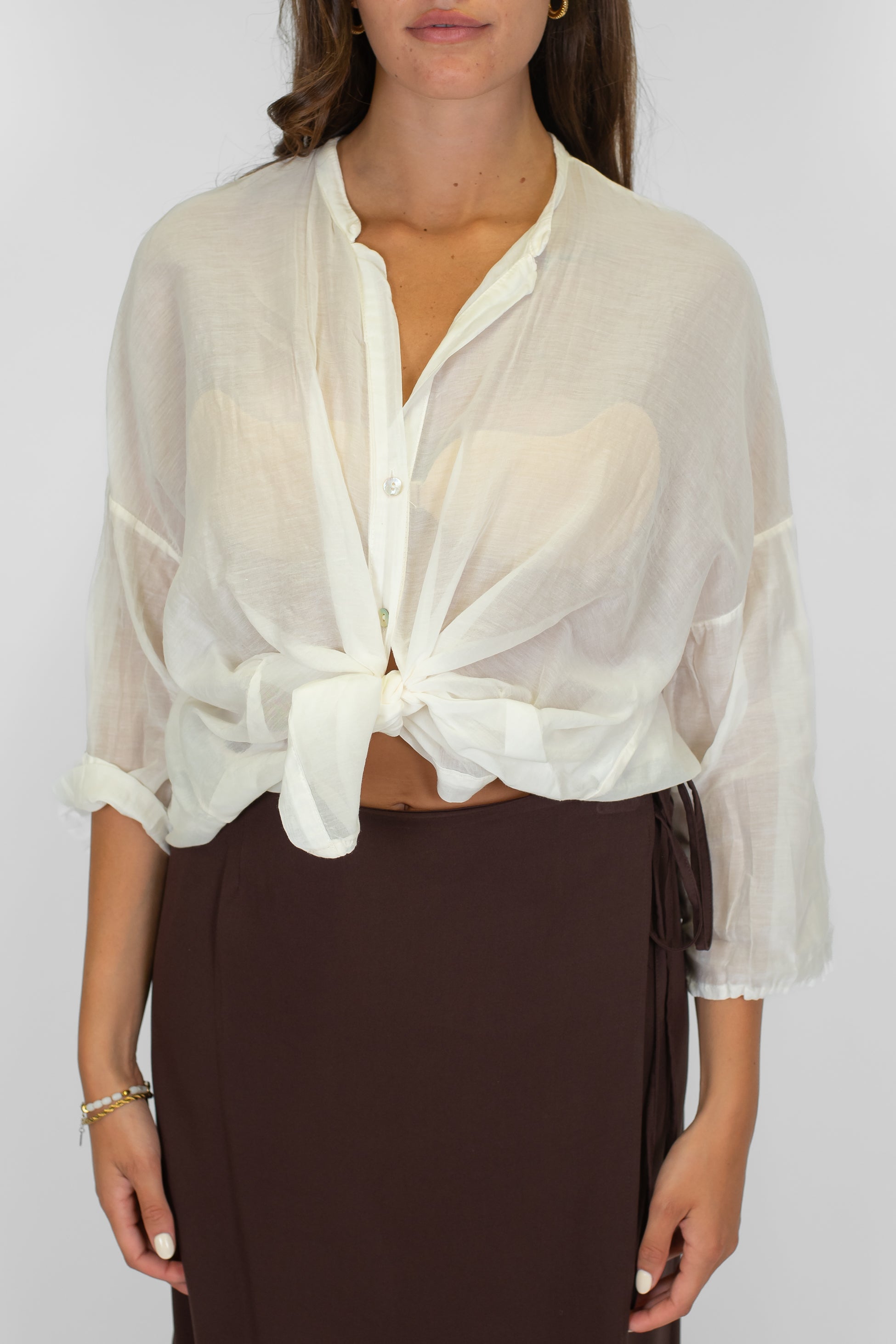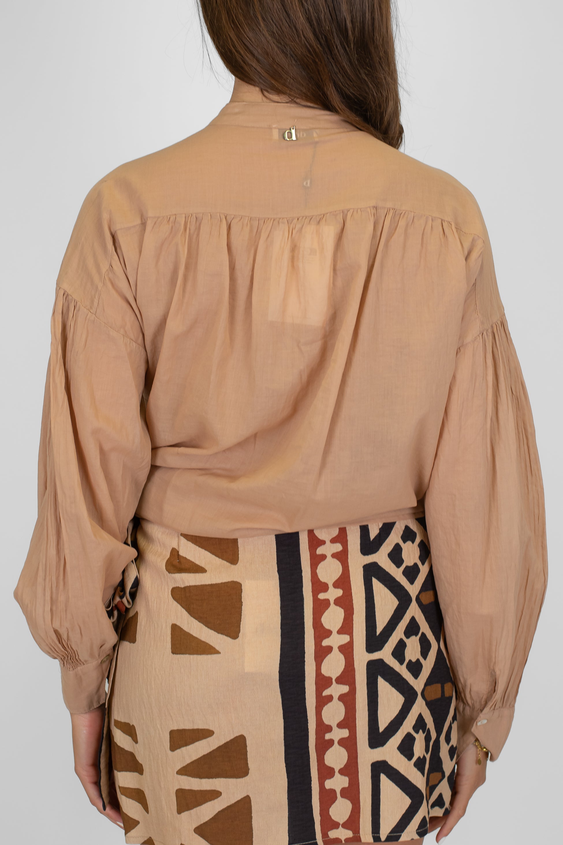 Maryley - Camicia in vicosa con fiocco al collo e manica a campana