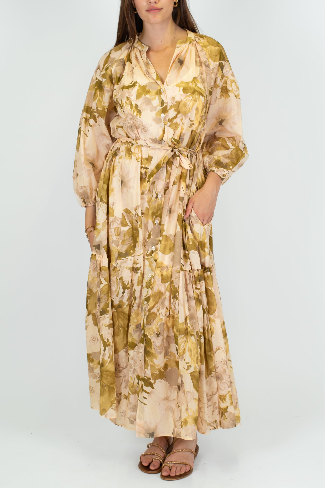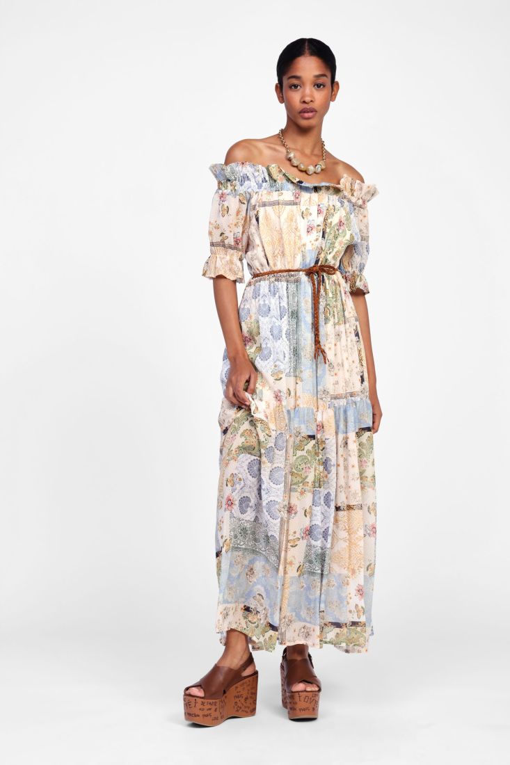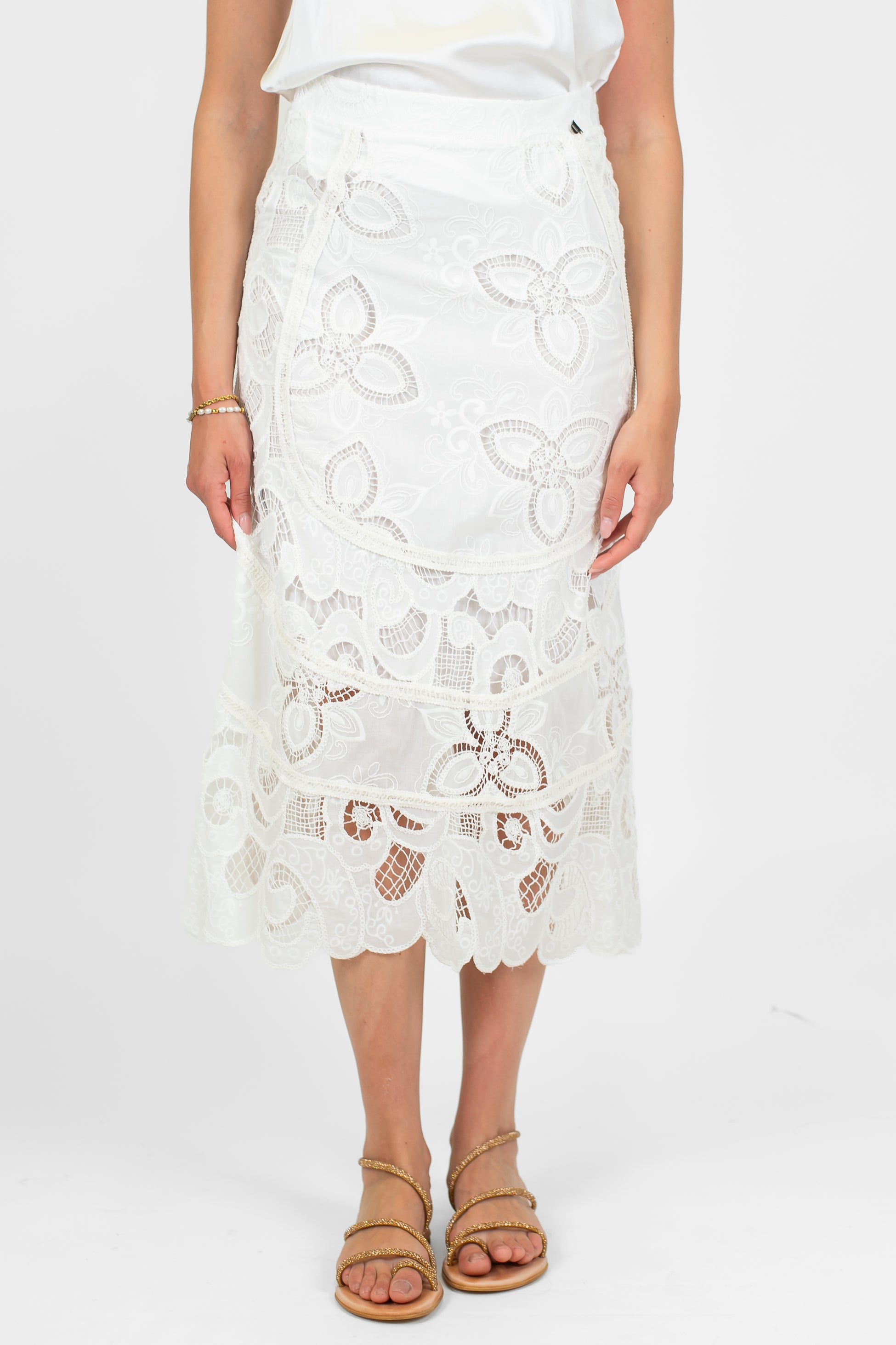 Dixie - Abito lungo fantasia floreale ricamata in pizzo con spacco lateraleDixie - Abito lungo fantasia floreale ricamata in pizzo con spacco laterale
