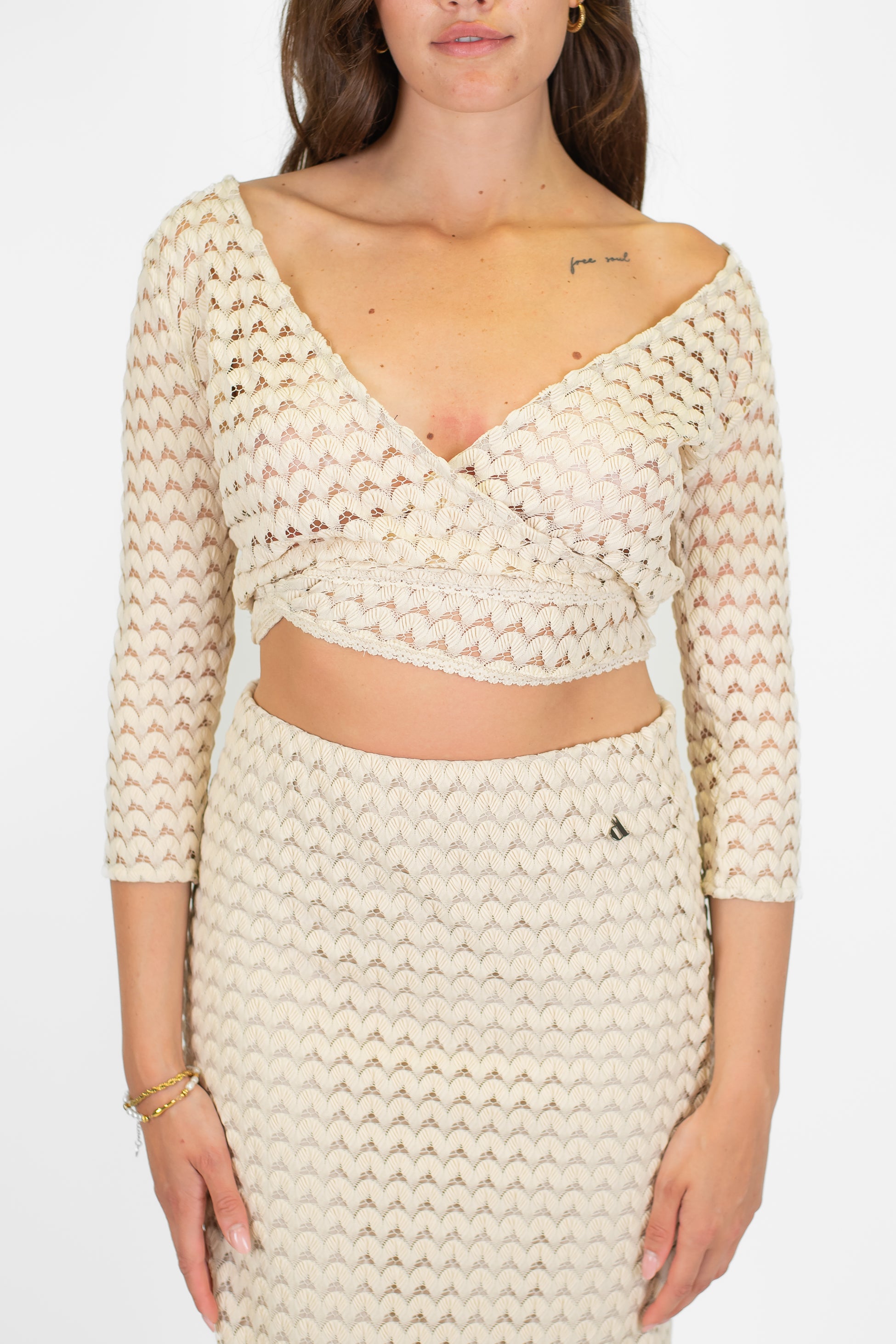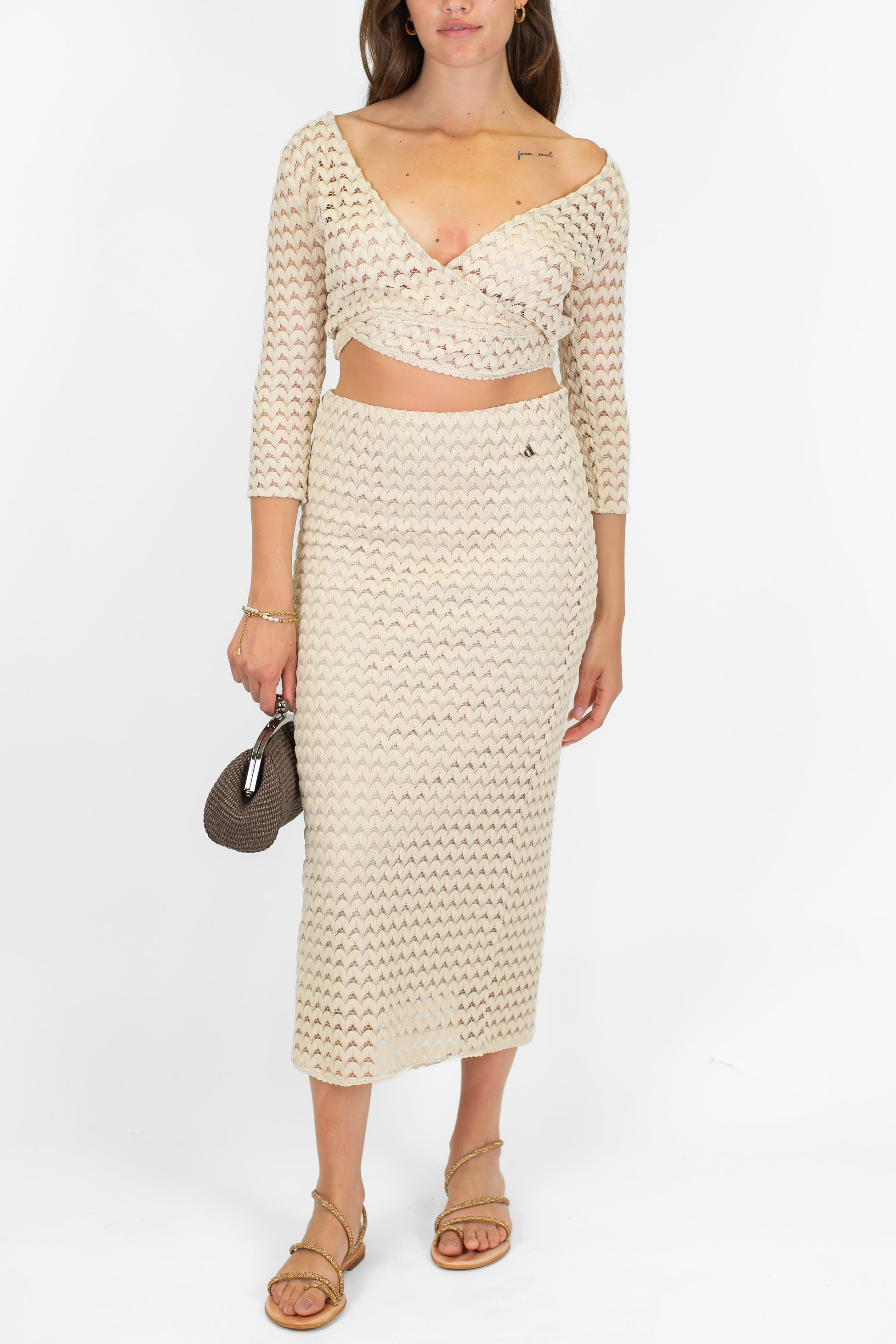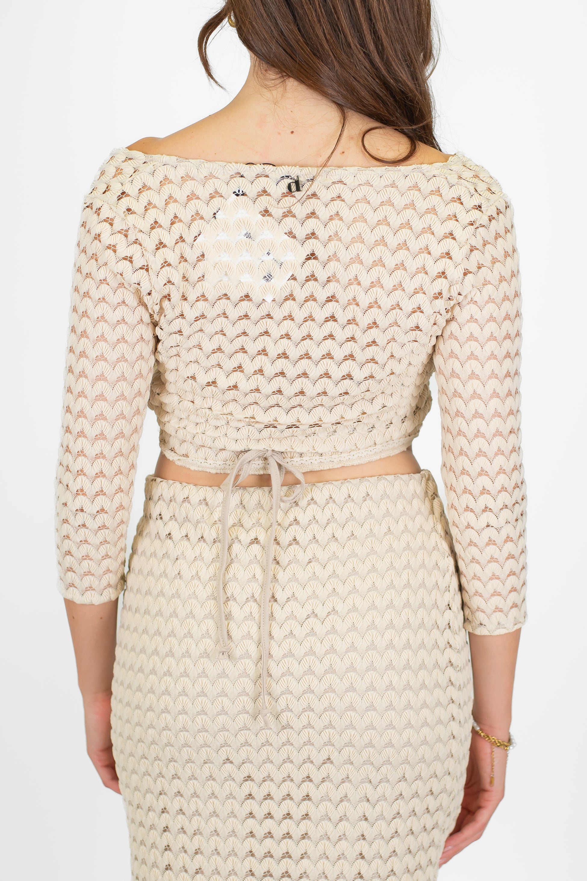 Dixie - Maglia girocollo a coste in misto lana con manicottiDixie - Maglia girocollo a coste in misto lana con manicotti