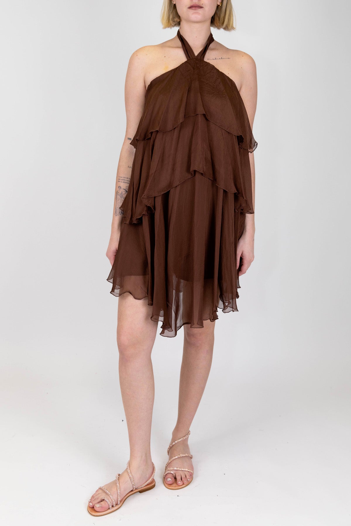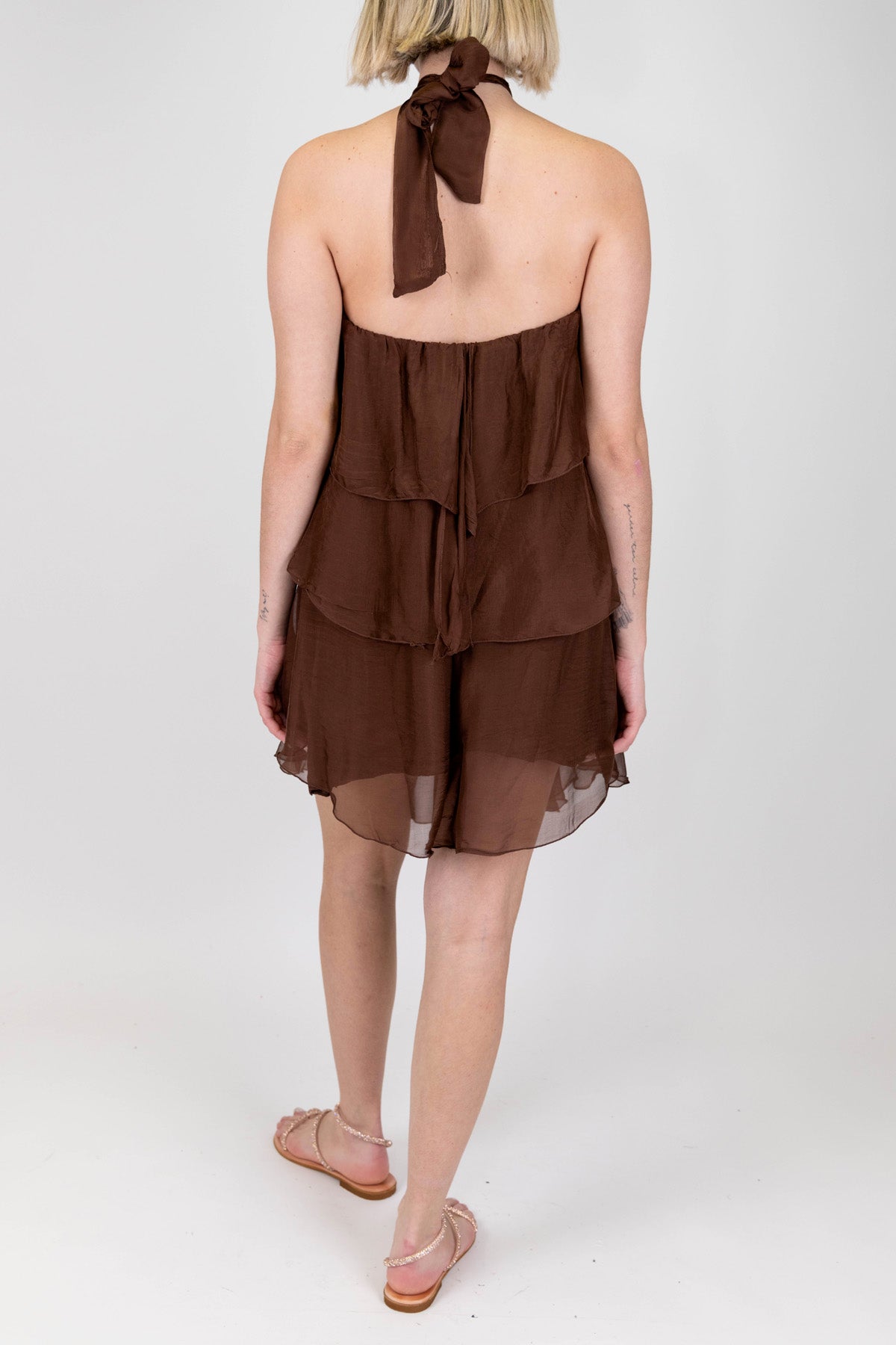 Haveone - Abito corto in paillettes con scollo stondato e laccio