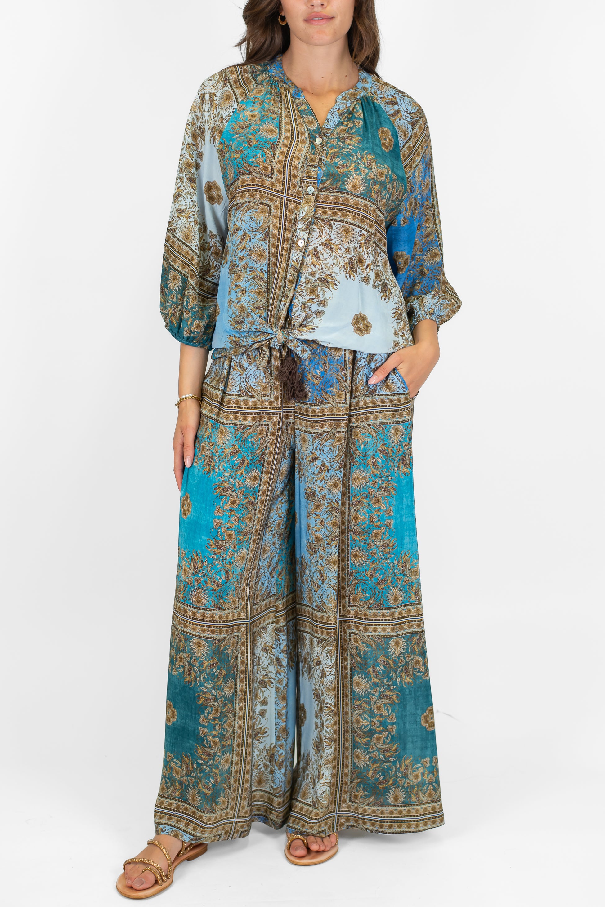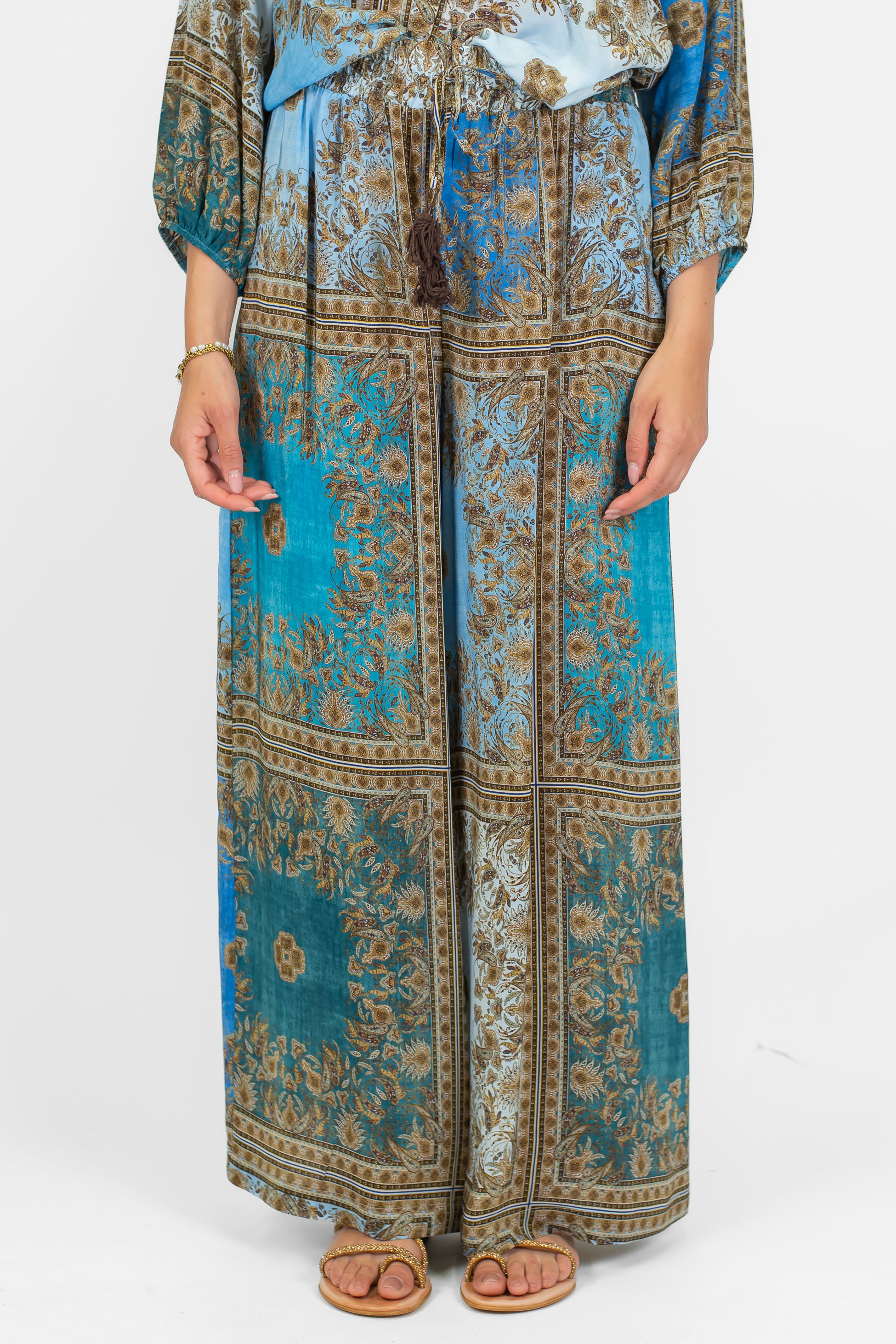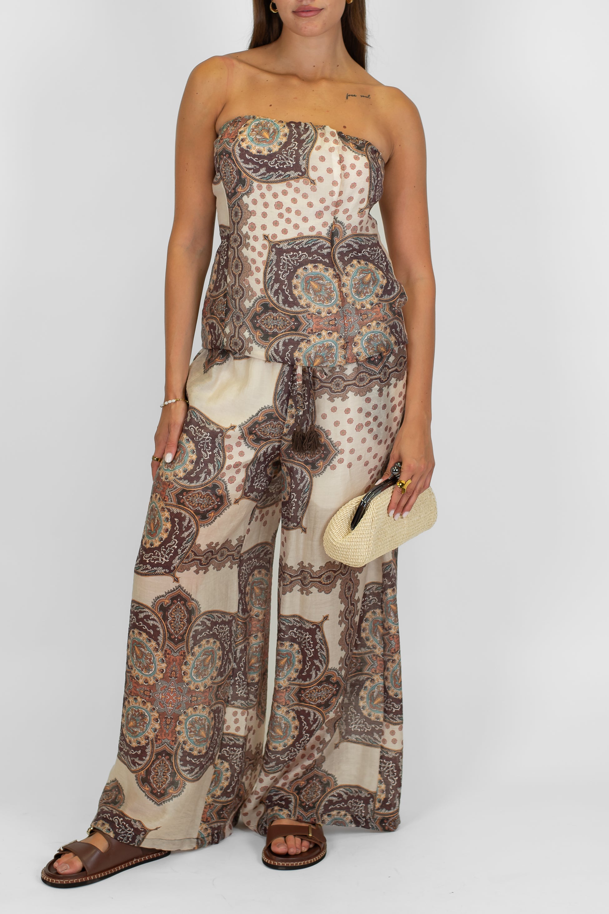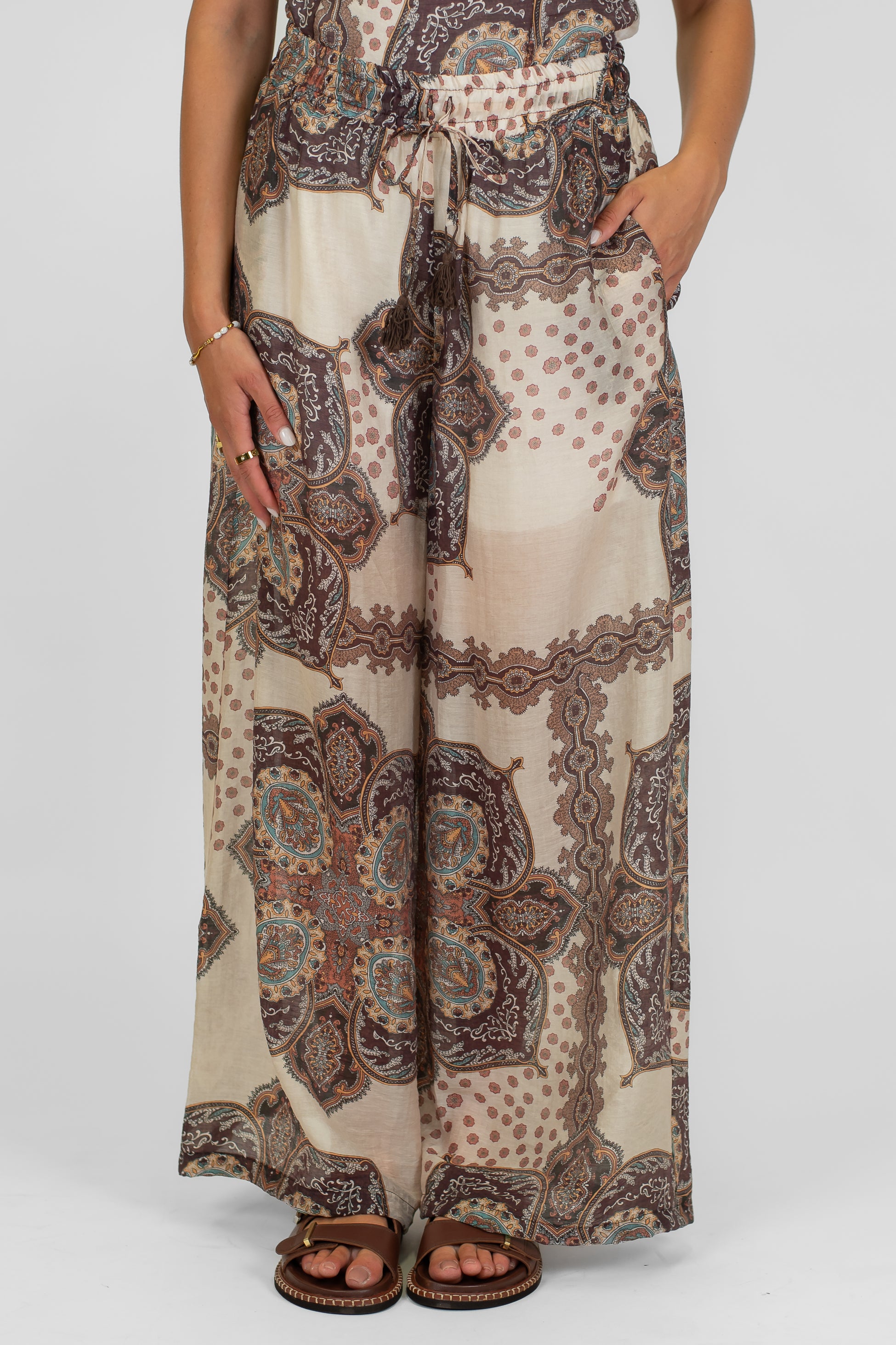 Haveone - Pantalone palazzo fantasia naturale in viscosa con coulisse
