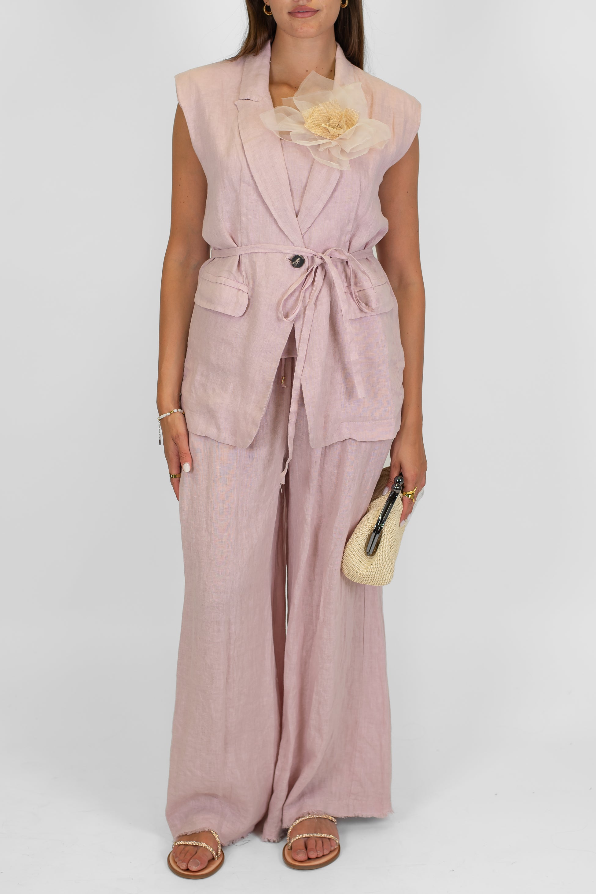 Tensione in - Pantalone palazzo in puro lino con coulisse