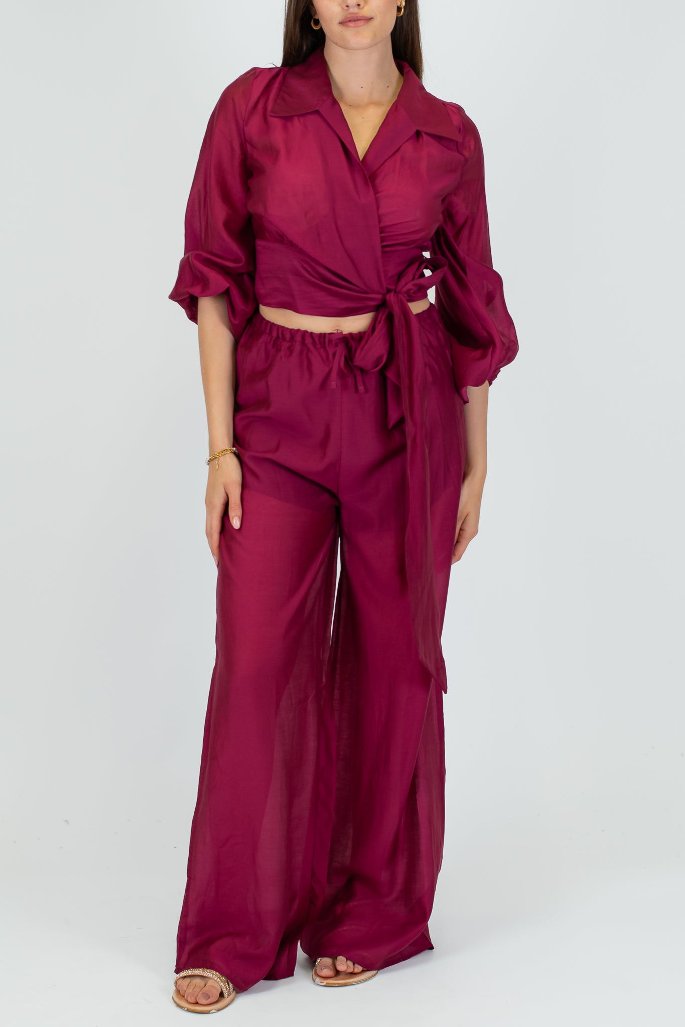 Tensione in - Pantalone palazzo in pizzo sangallo con coulisse