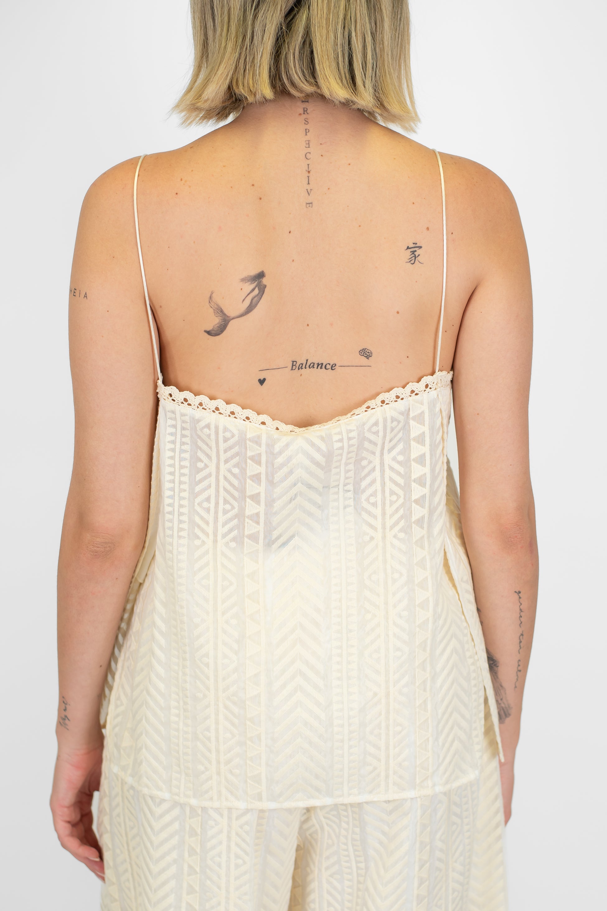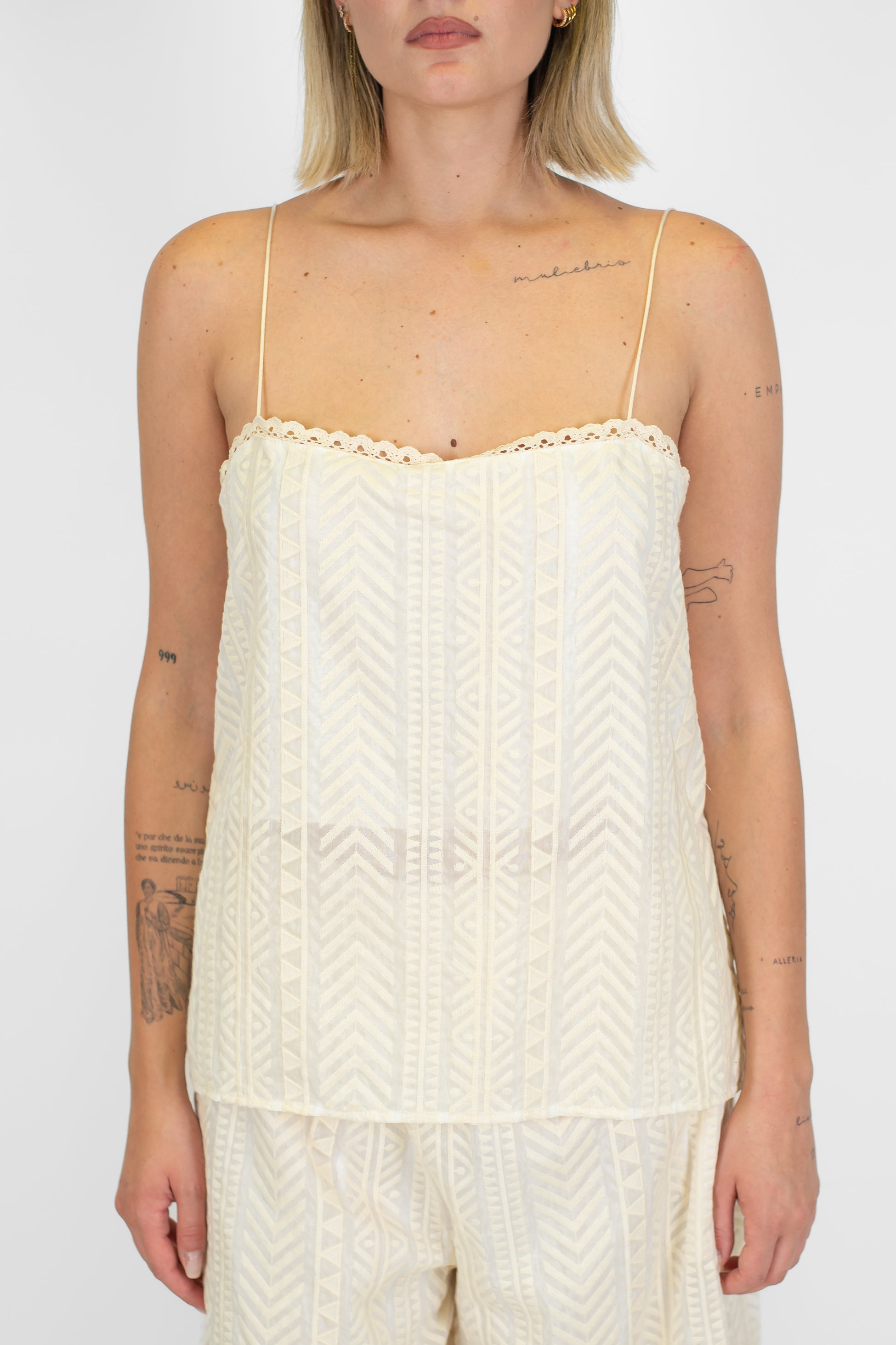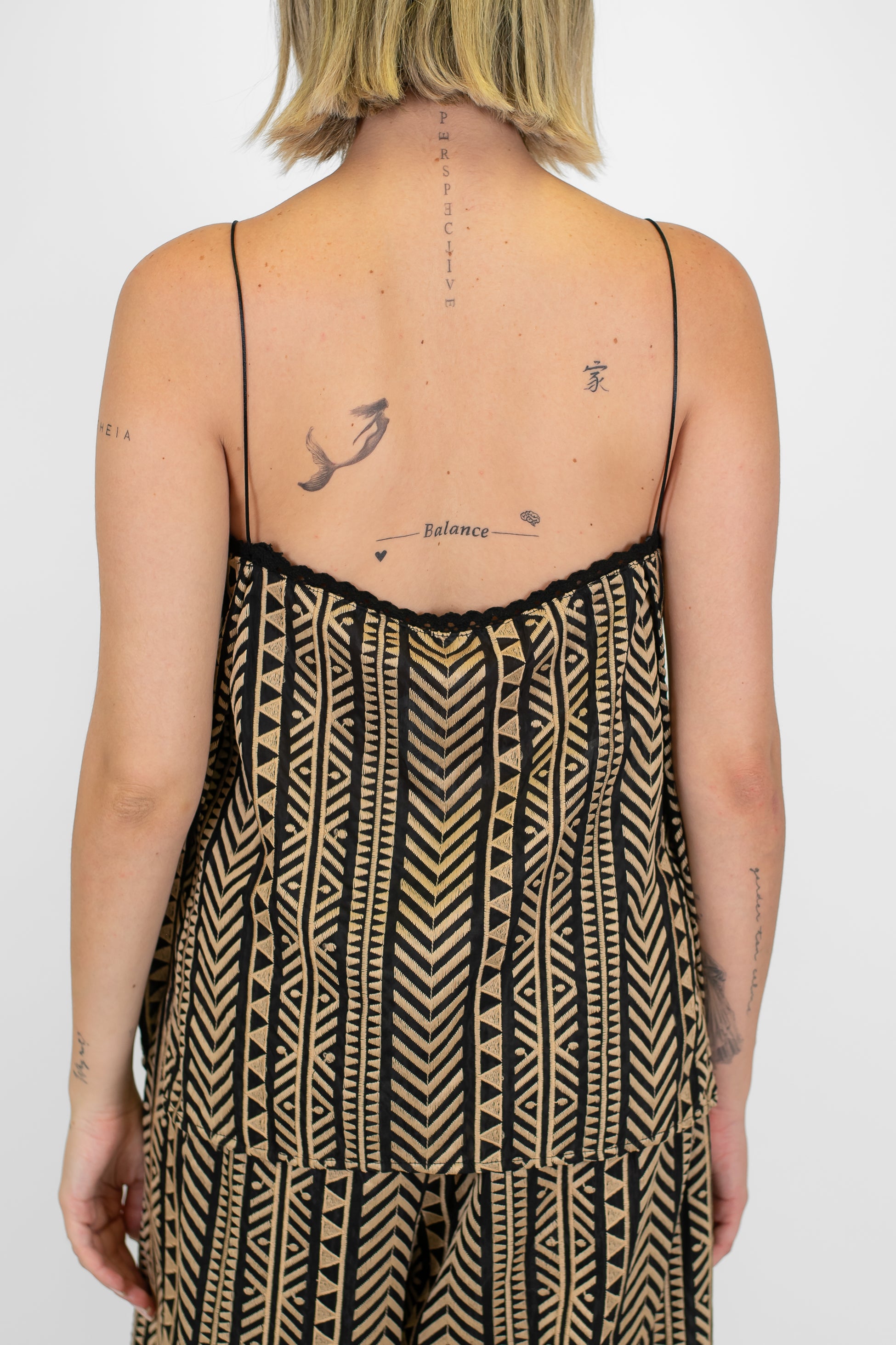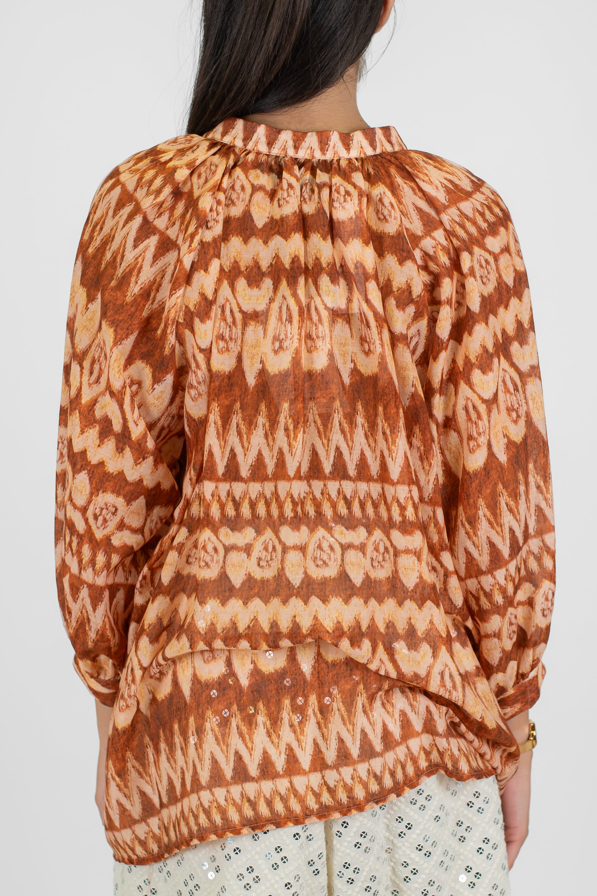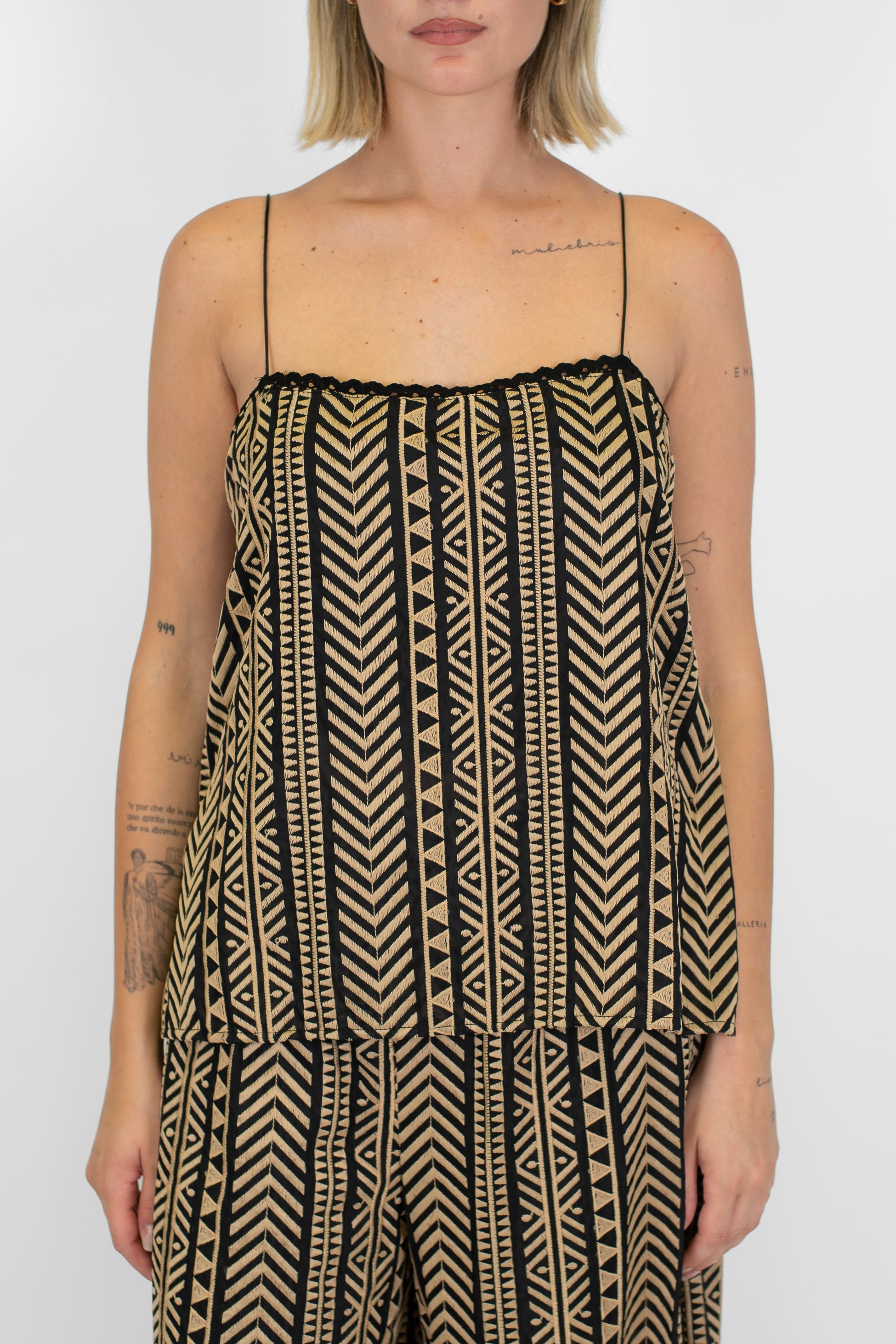 Tensione in - Top fantasia zig zag in mussola di cotone e seta con brfetelline