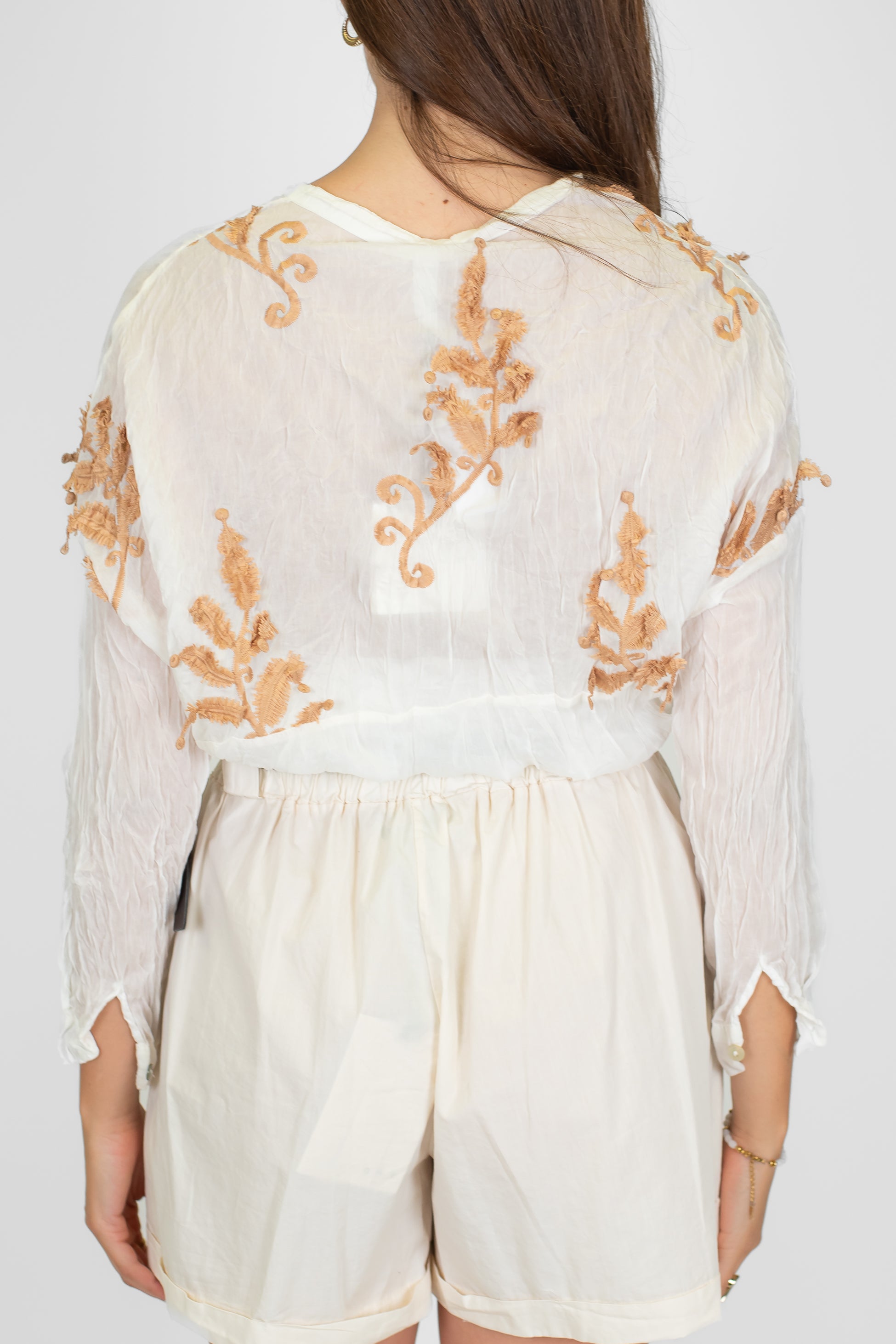 Tensione in - Camicia in misto seta con ricami tono su tono fronte-retro