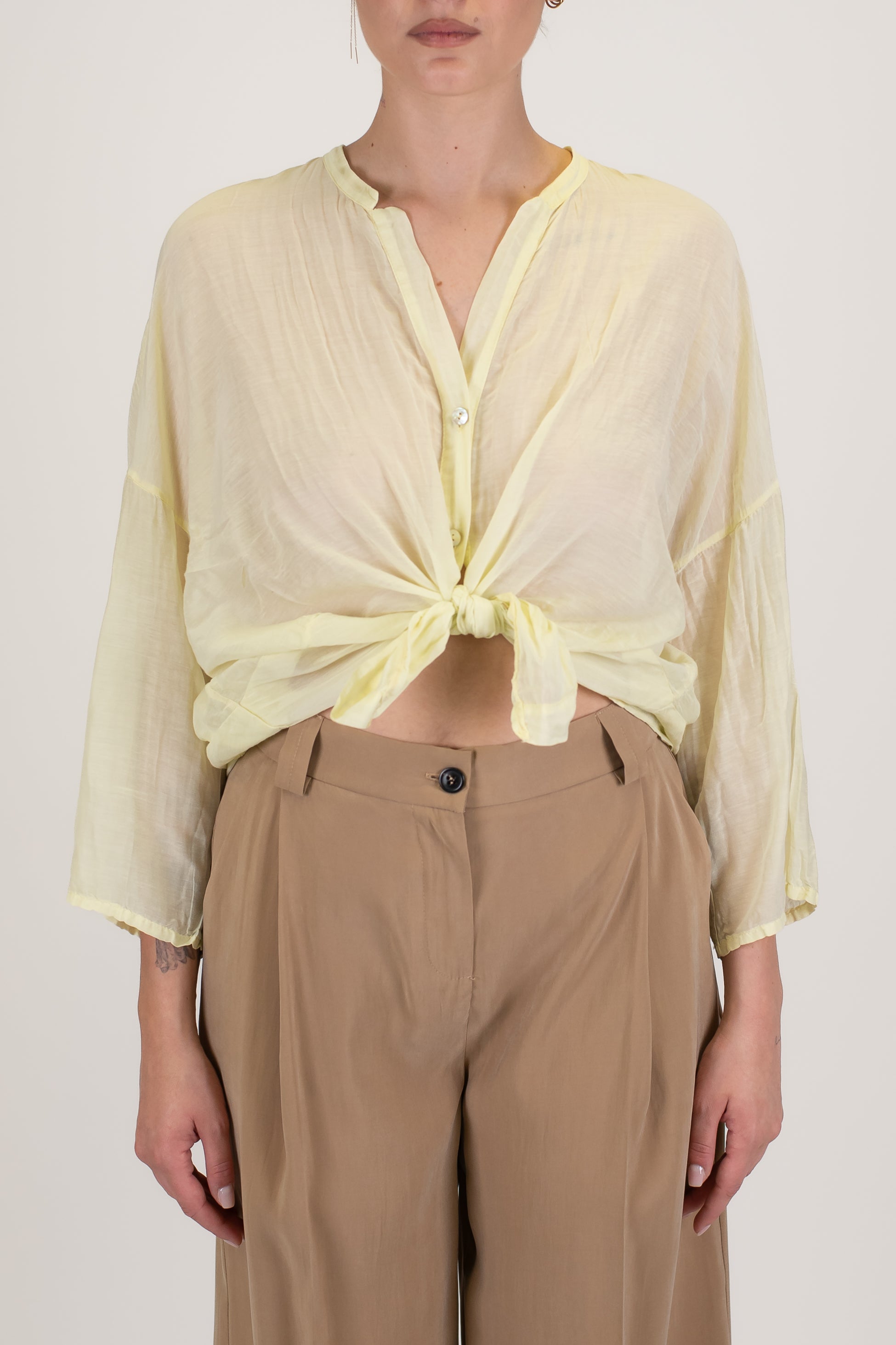 Tensione in - Camicia tinta unita in misto seta con collo coreano