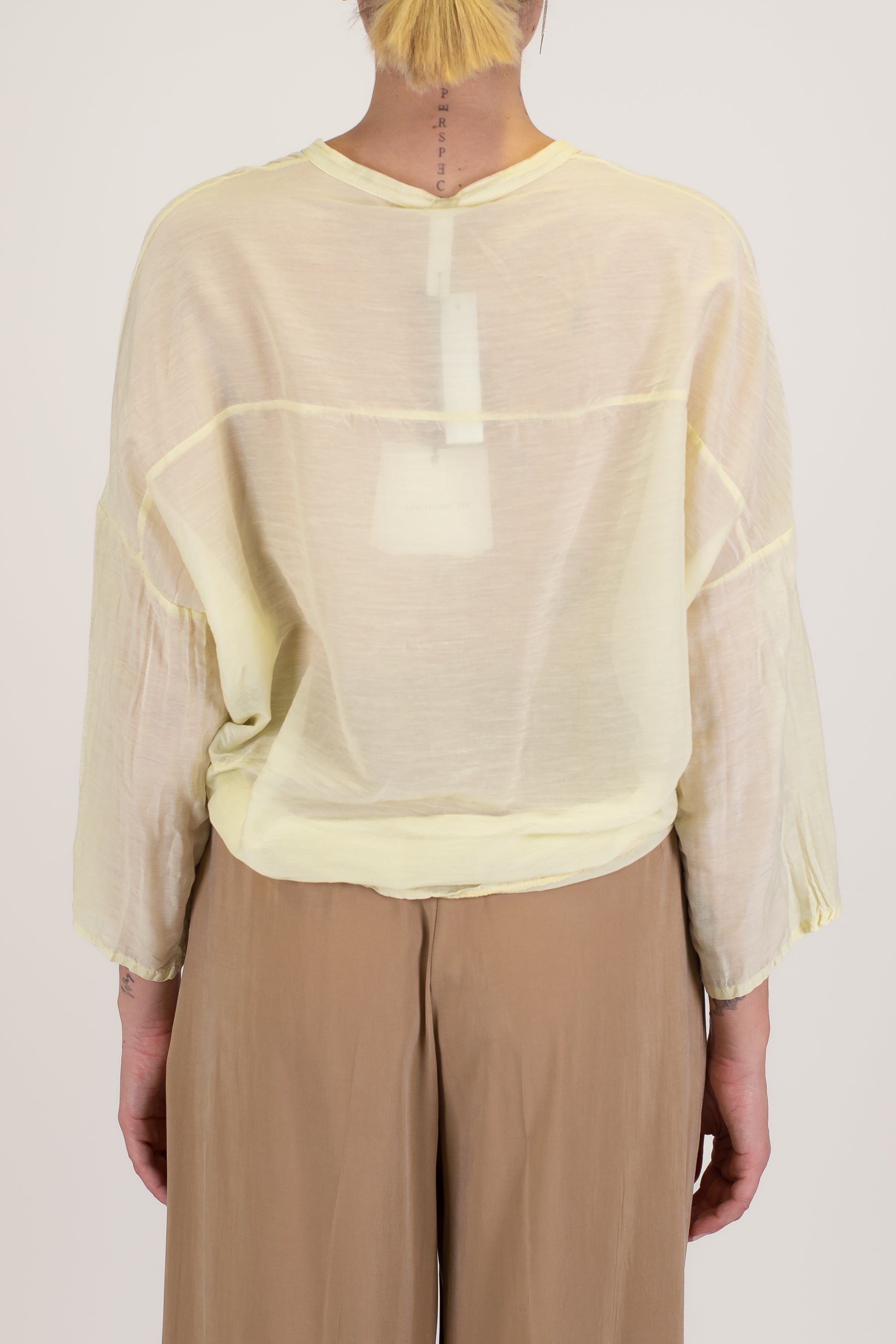 Tensione in - Camicia in misto seta con maniche in crochet e collo coreano