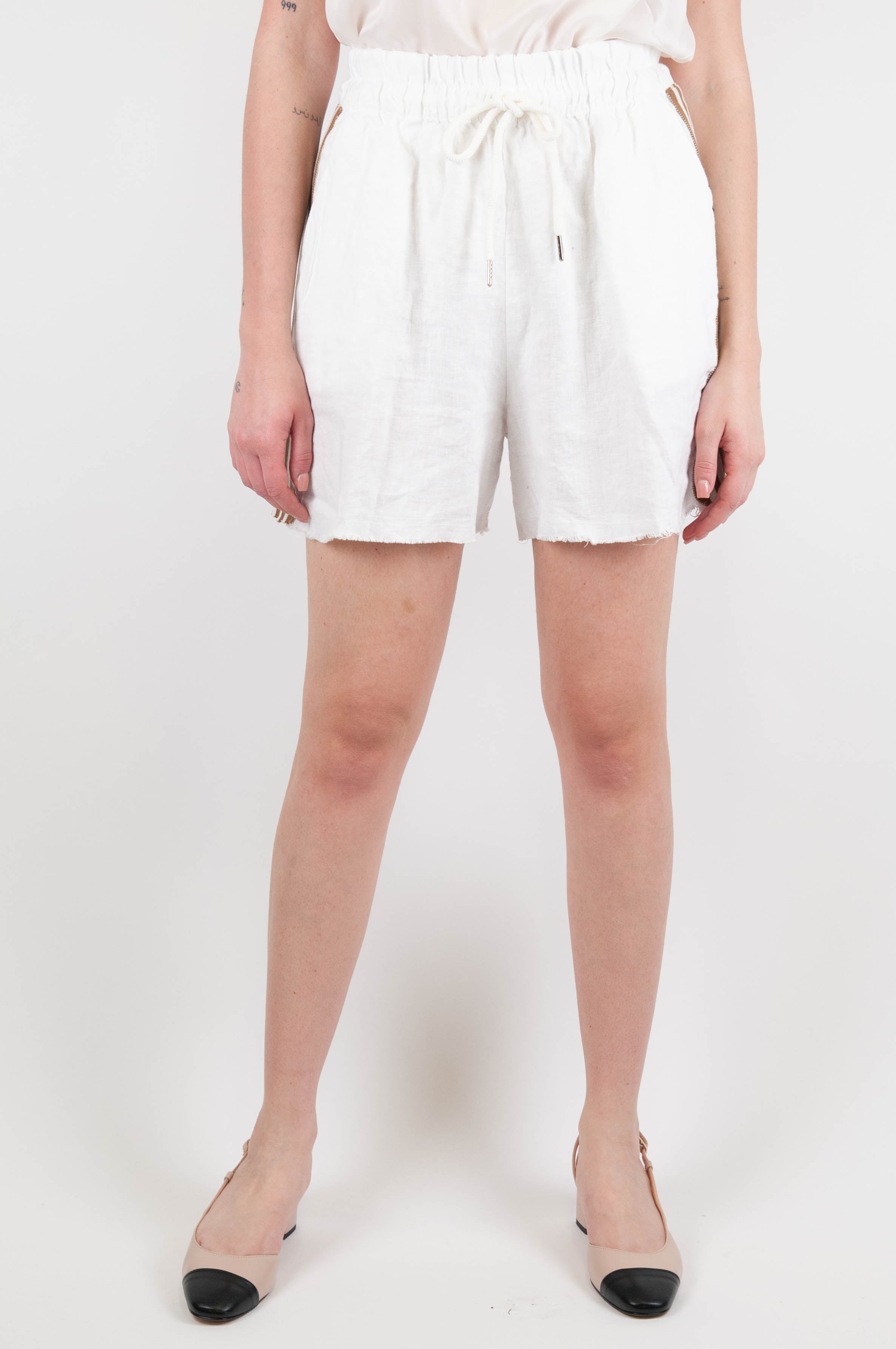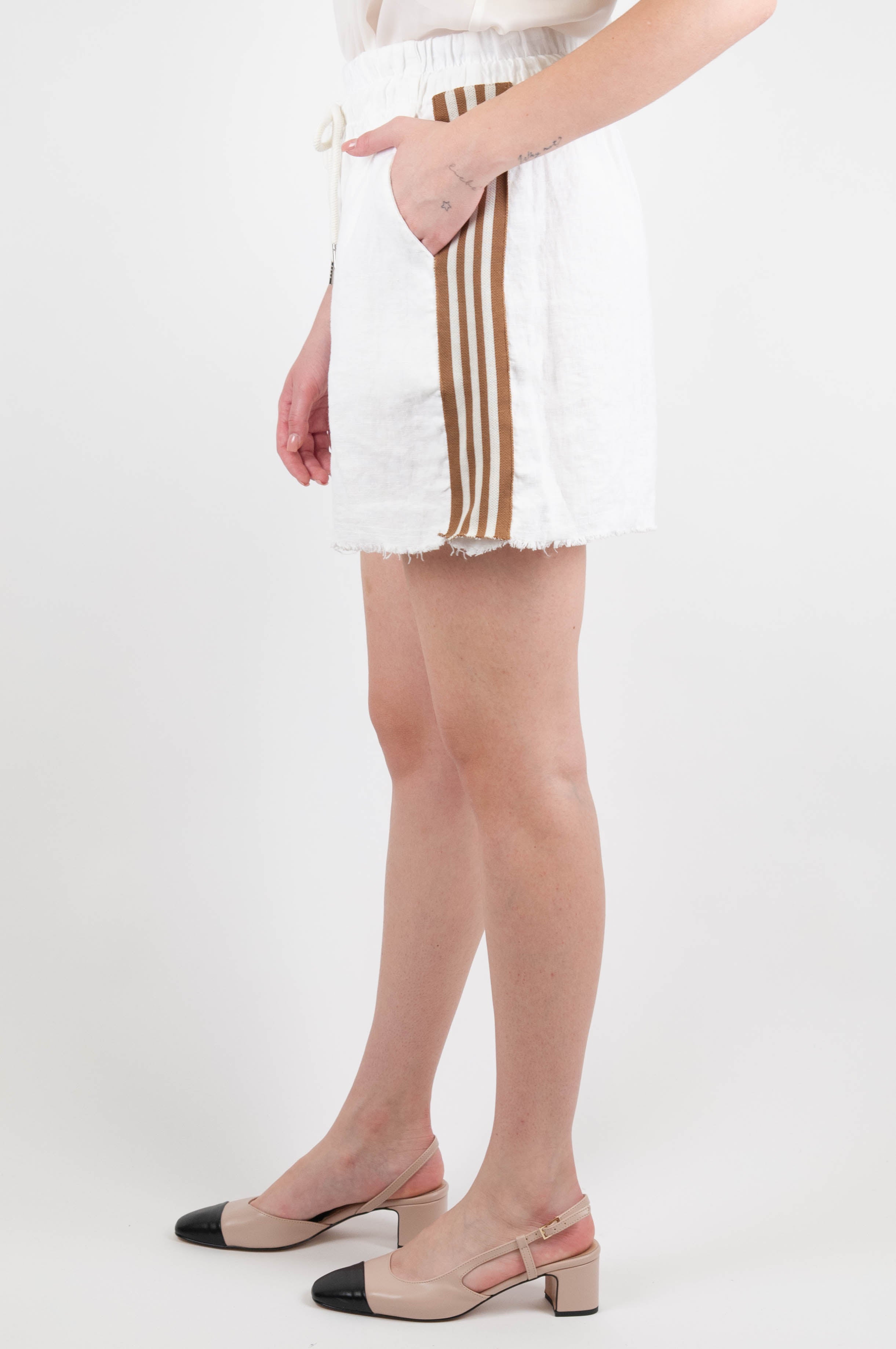 Motel - Shorts in lino con coulisse e banda laterale a contrasto