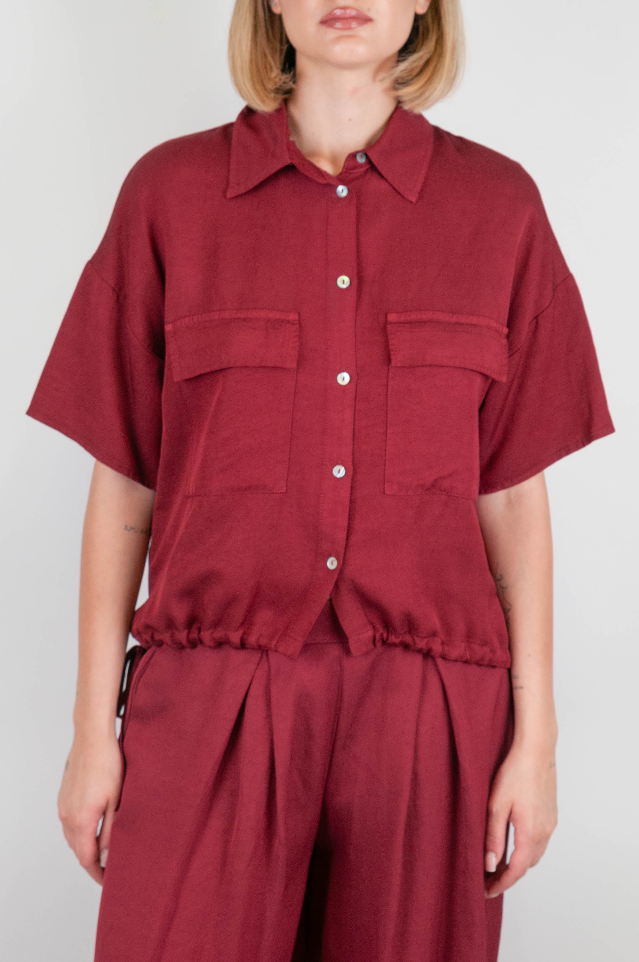 Dixie - Camicia mezza manica in misto lino con taschini sul petto ed elastico sul fondo