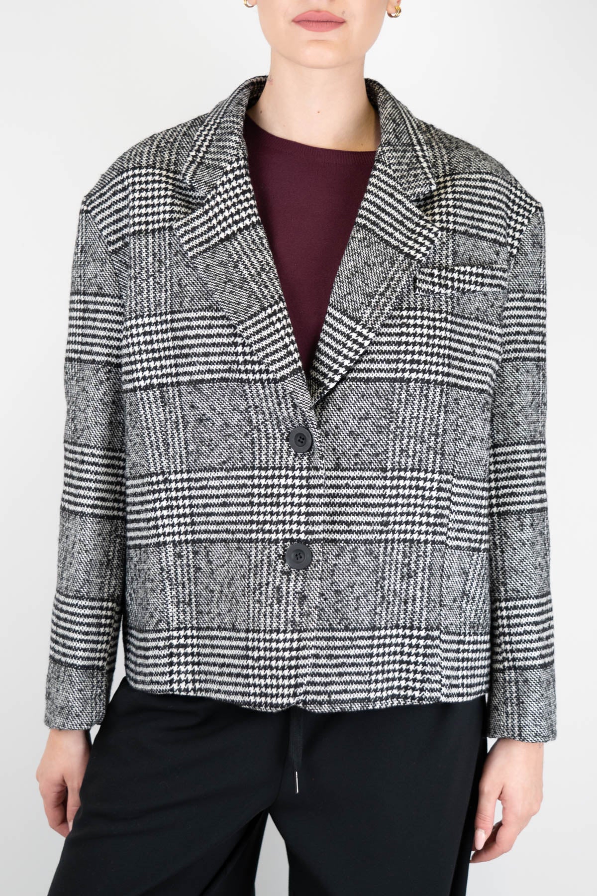 Dixie - Giacca crop monopetto a scatola fantasia check