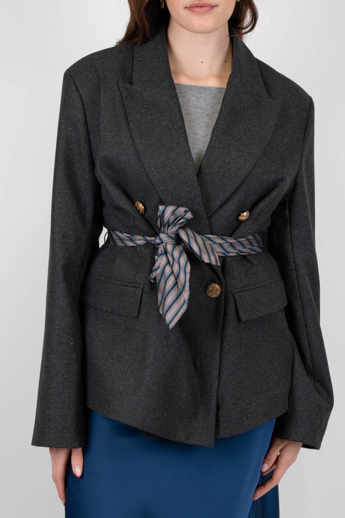 Dixie - Giacca doppiopetto in misto lana con cintura cravatta