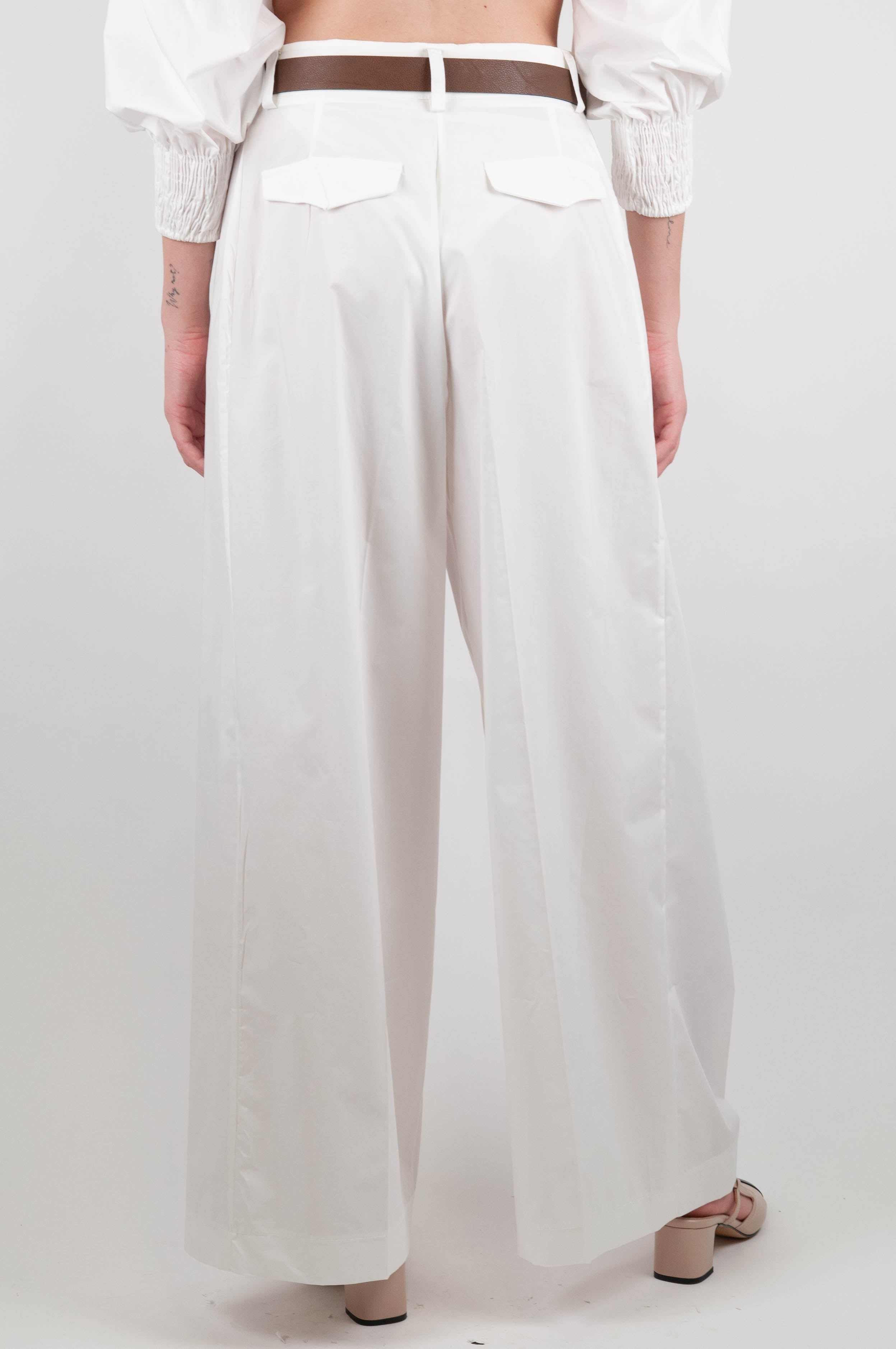 Pantalone palazzo con pinces in tela paracadute Dixie. Composizione: 100%CO