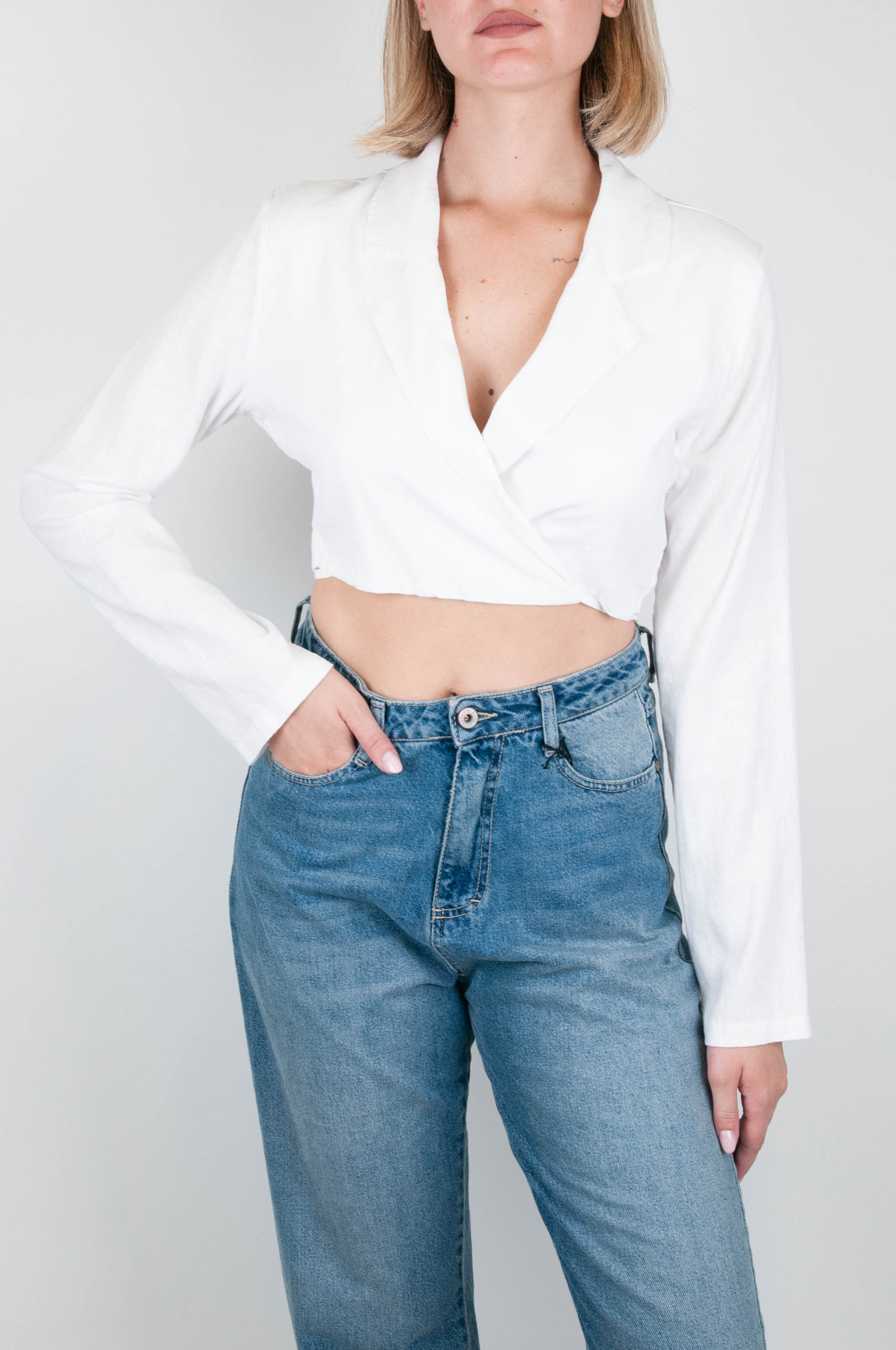 Haveone - Camicia crop a portafoglio in misto lino