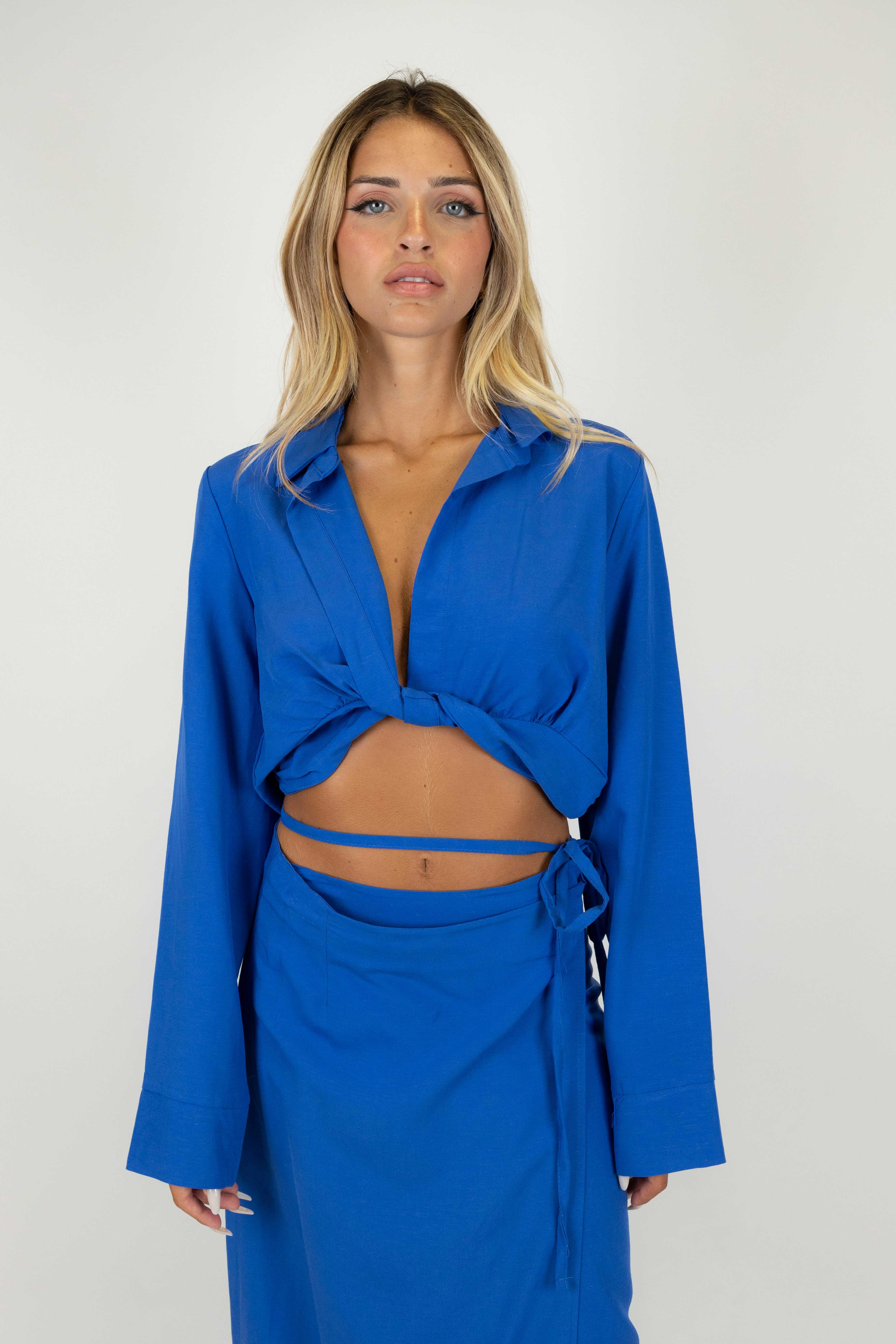 Haveone - Camicia crop con nodo avanti in misto lino