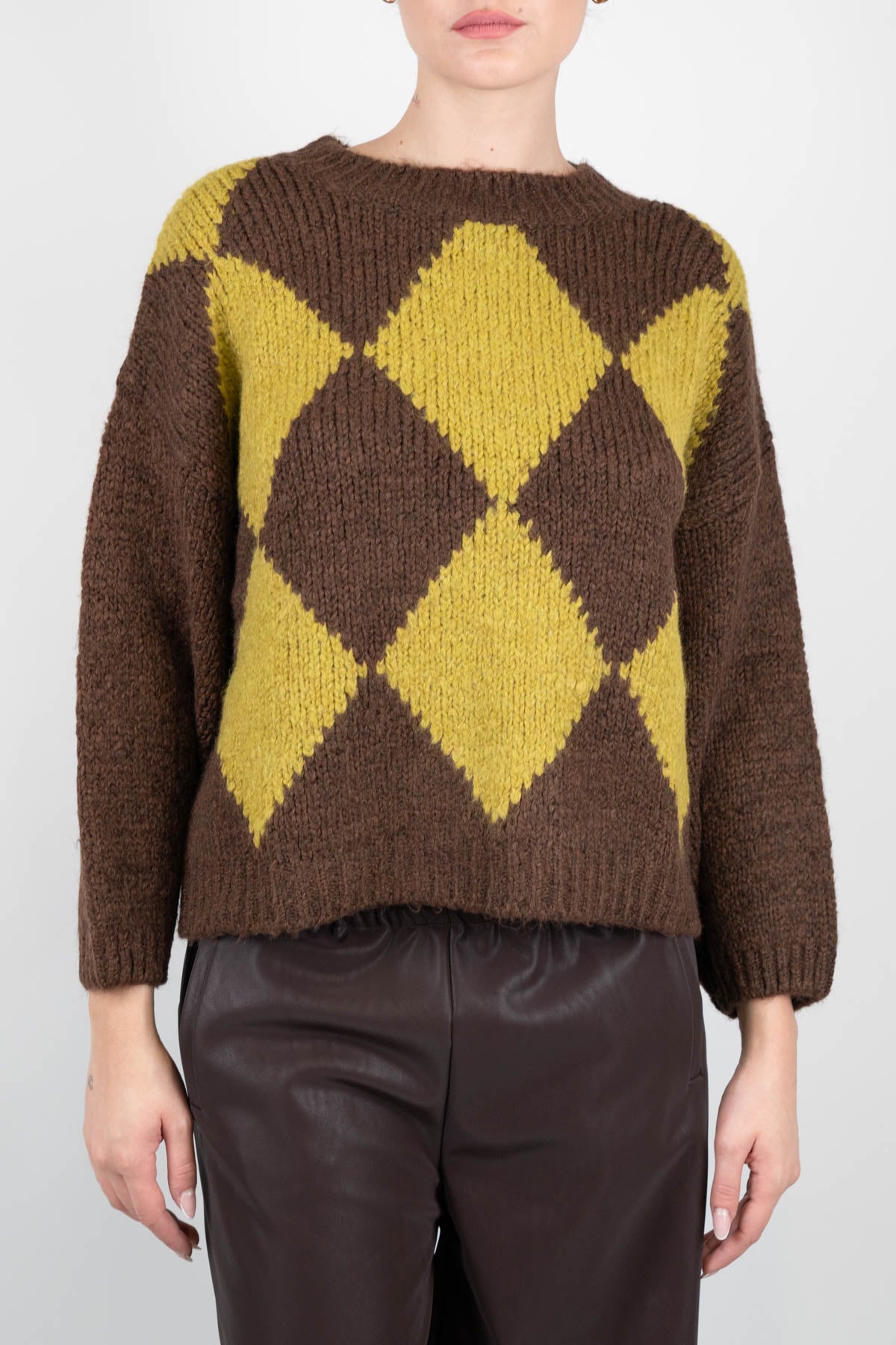 Maglia Haveone girocollo fantasia rombi. Composizione: 65%PC 17%PA 9%WO9%VI