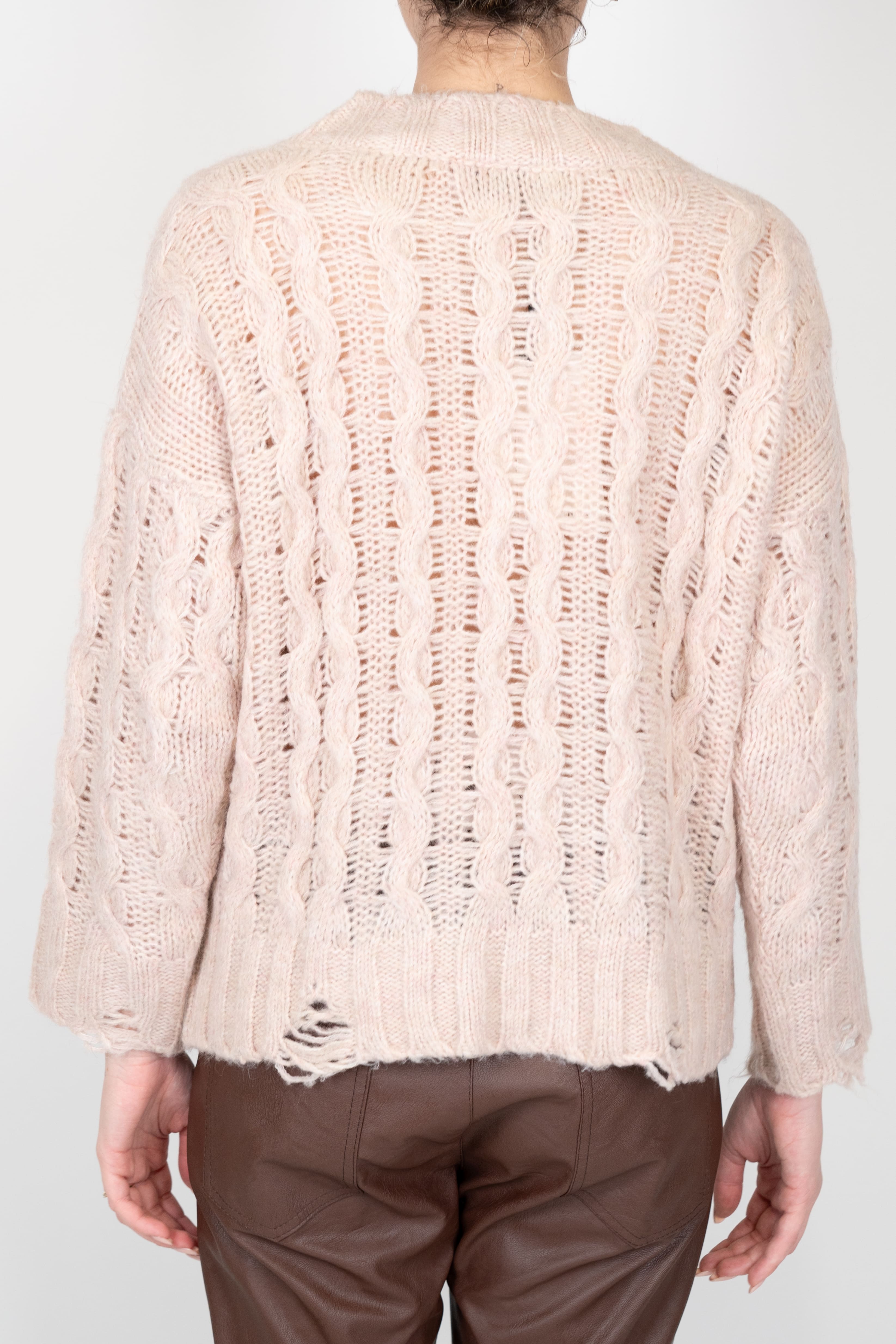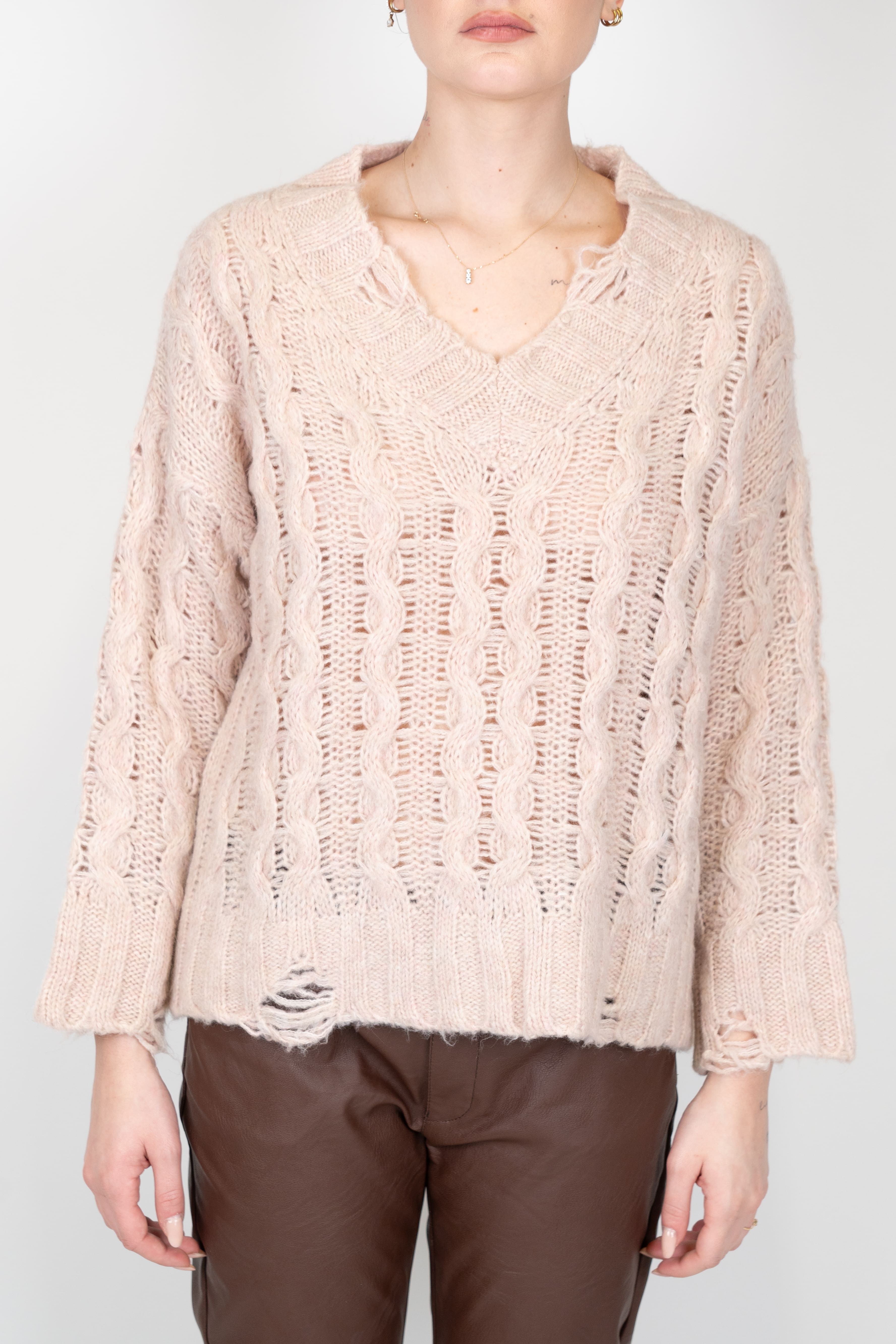 Maglia over scollo a V in misto lana con rotture sul fondo Haveone. Composizione: 57%PC 29%PA 7%VI 7%WO