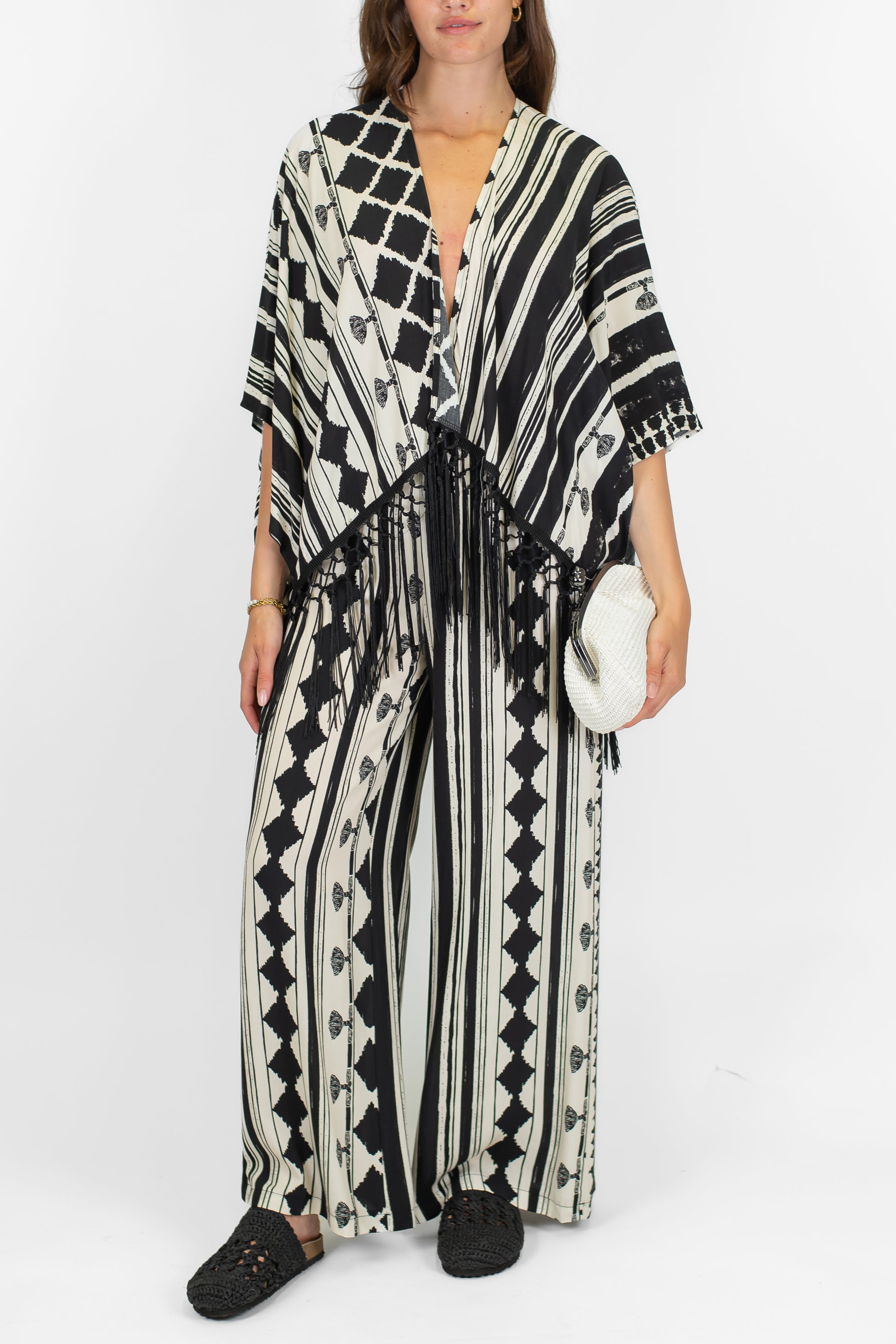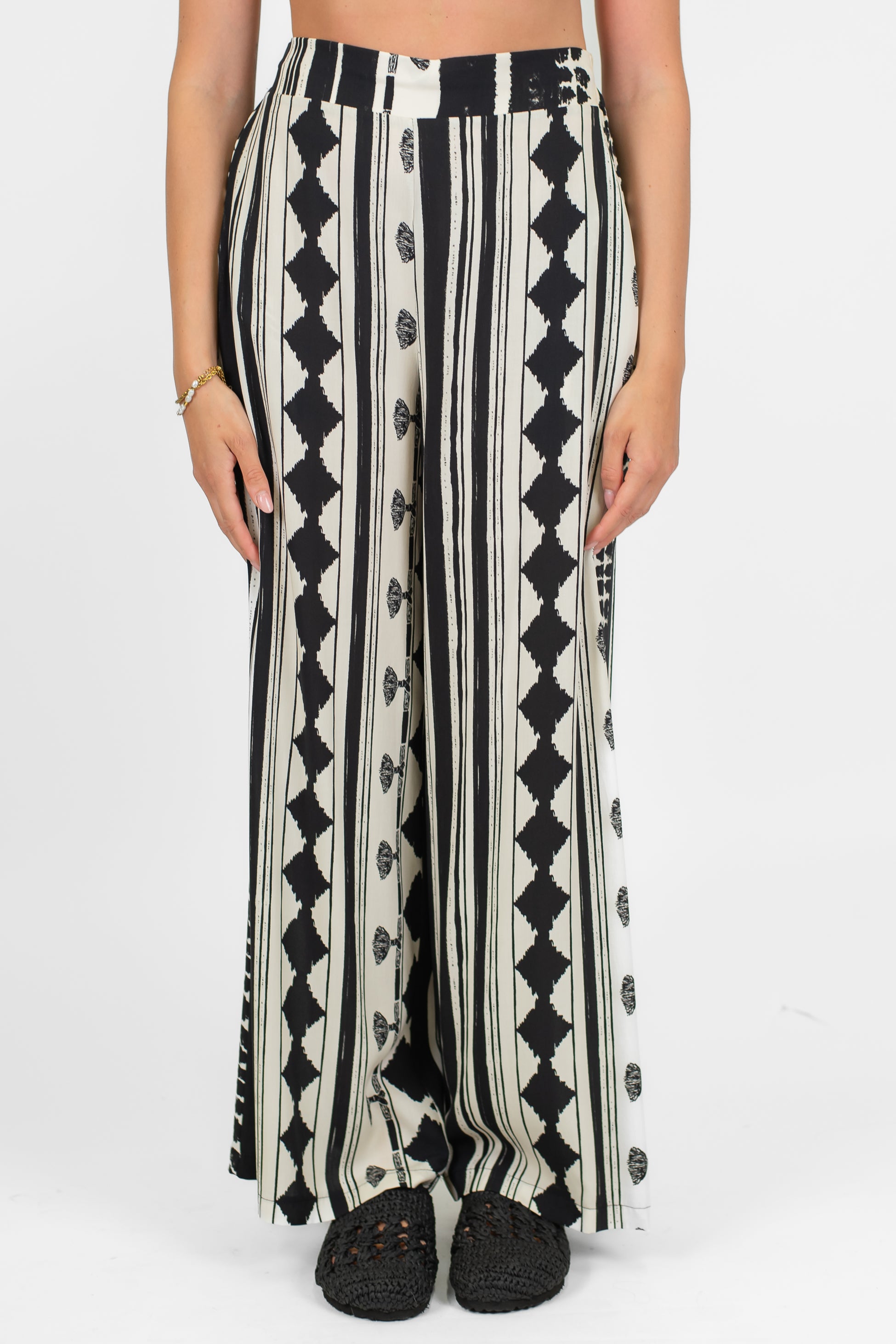 Pantalone palazzo fantasia astratta in viscosa con elastico in vita Haveone. Composizione: 100%VI