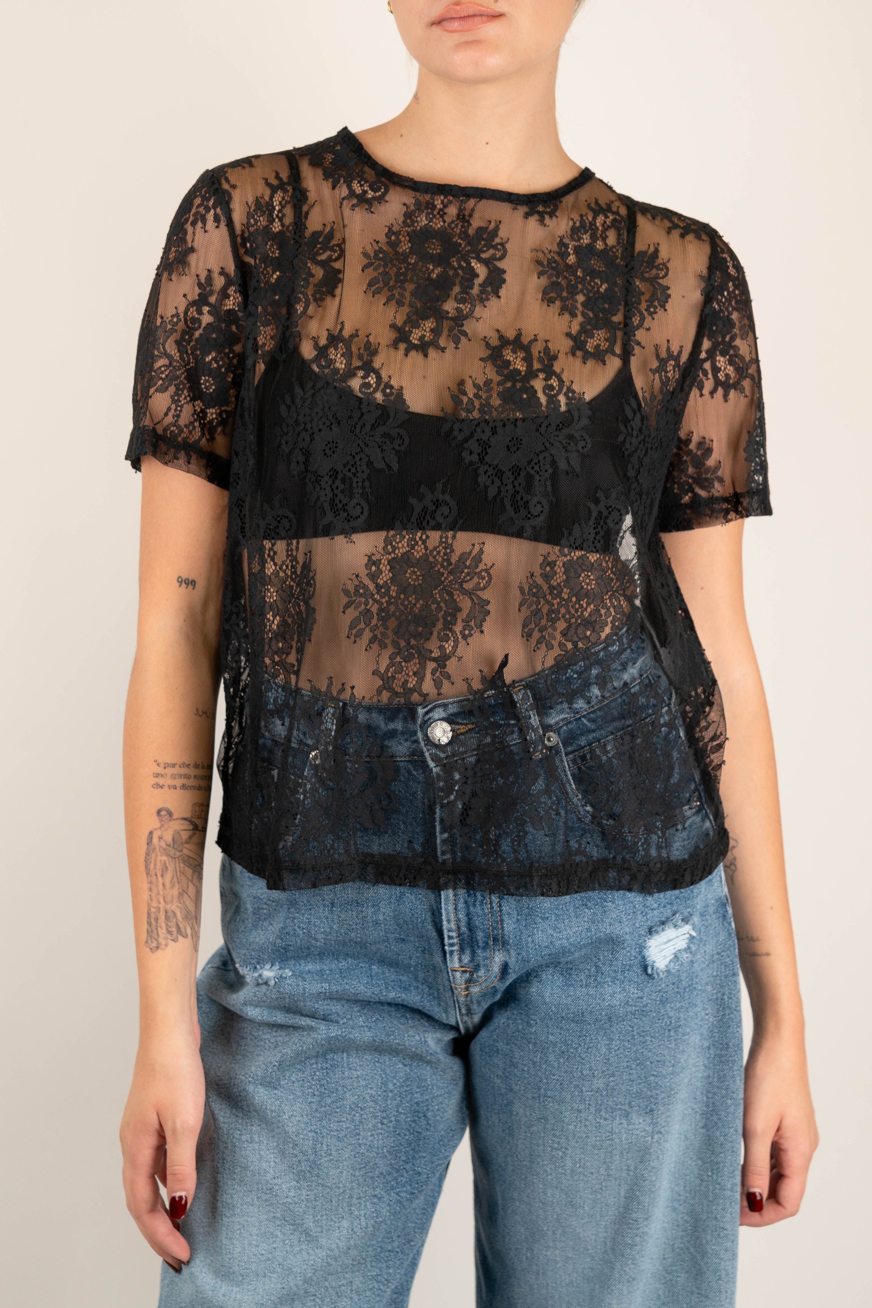 Haveone - T-shirt ricamata in pizzo