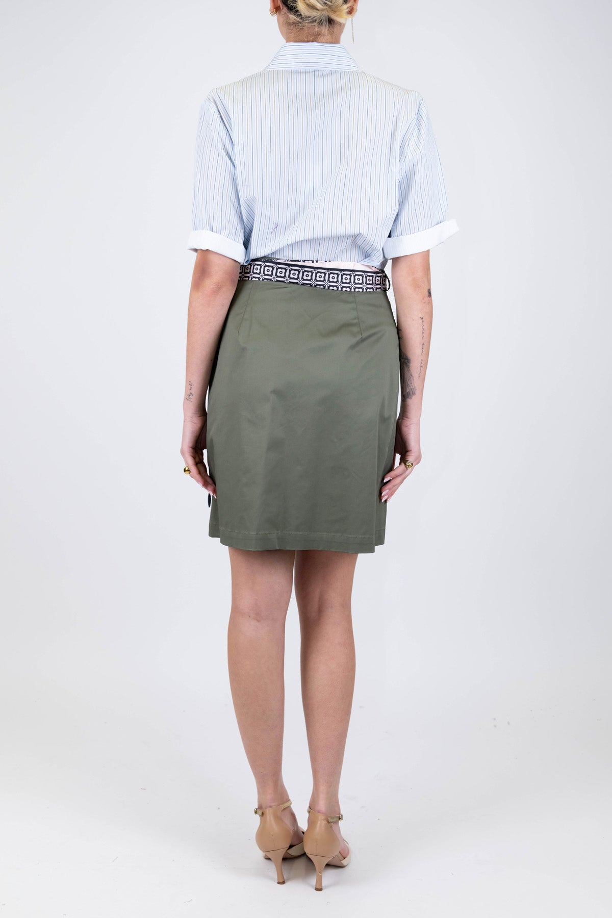 Maryley - Abito corto con camicia a righe e gonna con foulard