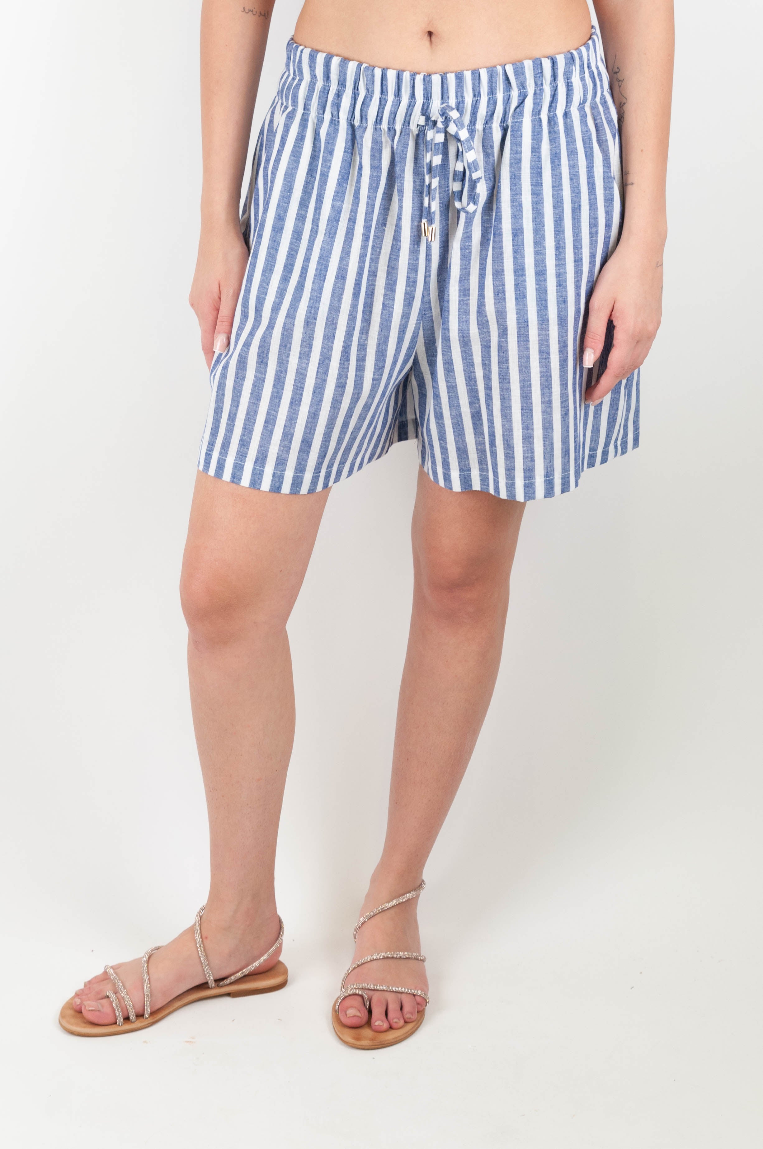 Bermuda a righe in misto lino con coulisse Motel Composizione: 55%LI 45%CO