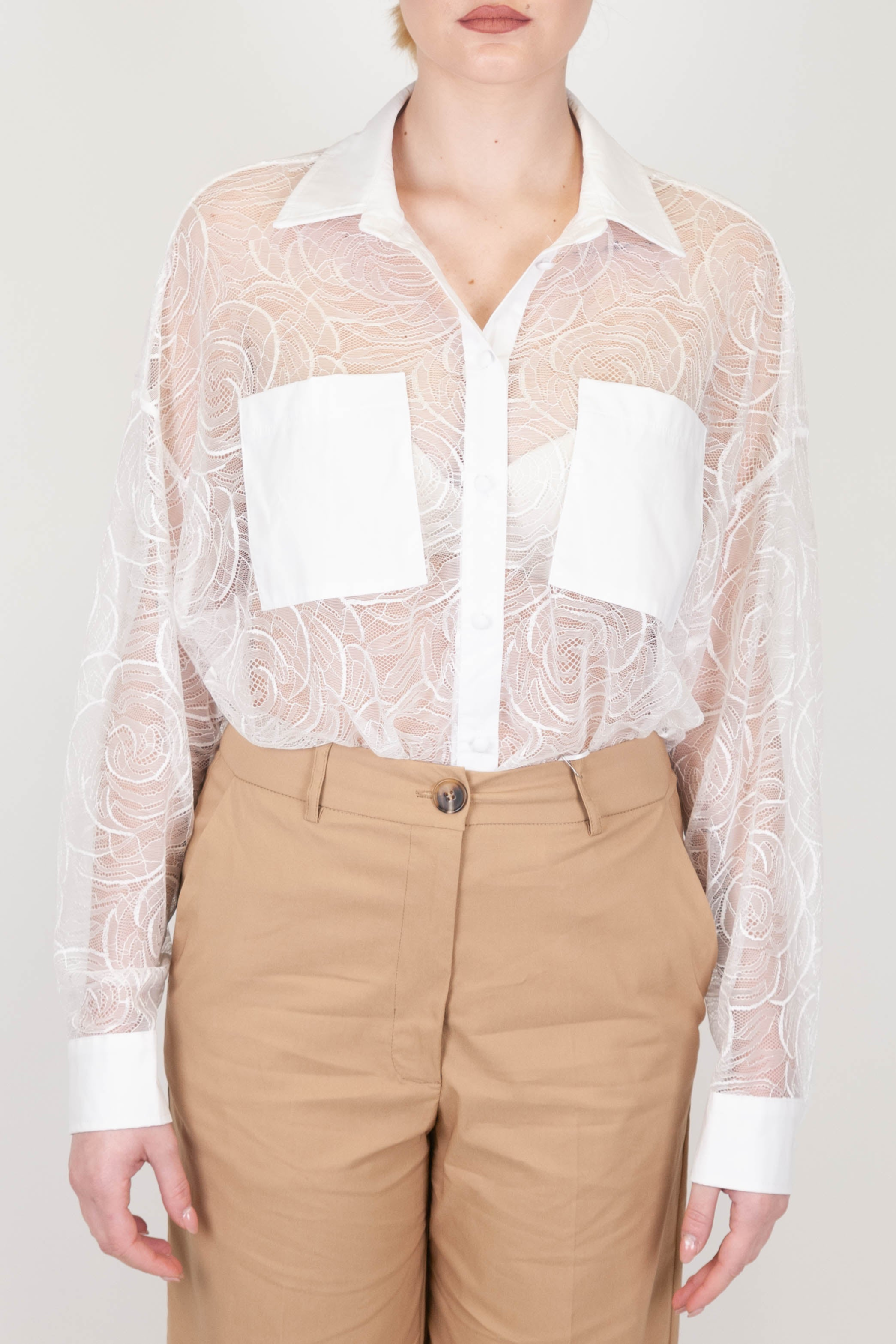 Motel - Camicia in pizzo con estremità e taschini in cotone