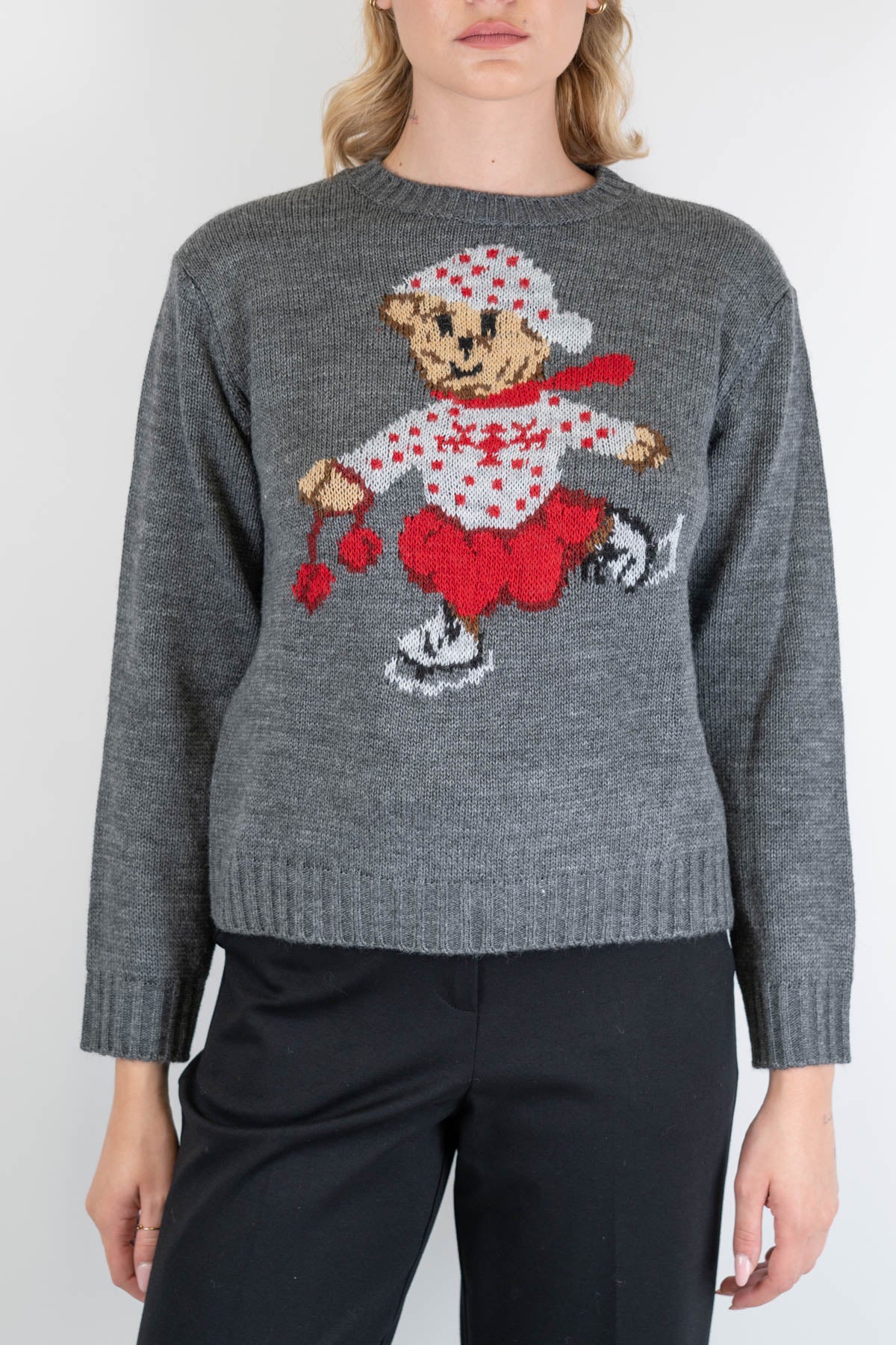 Motel - Maglia girocollo in misto lana con orsetto natalizio