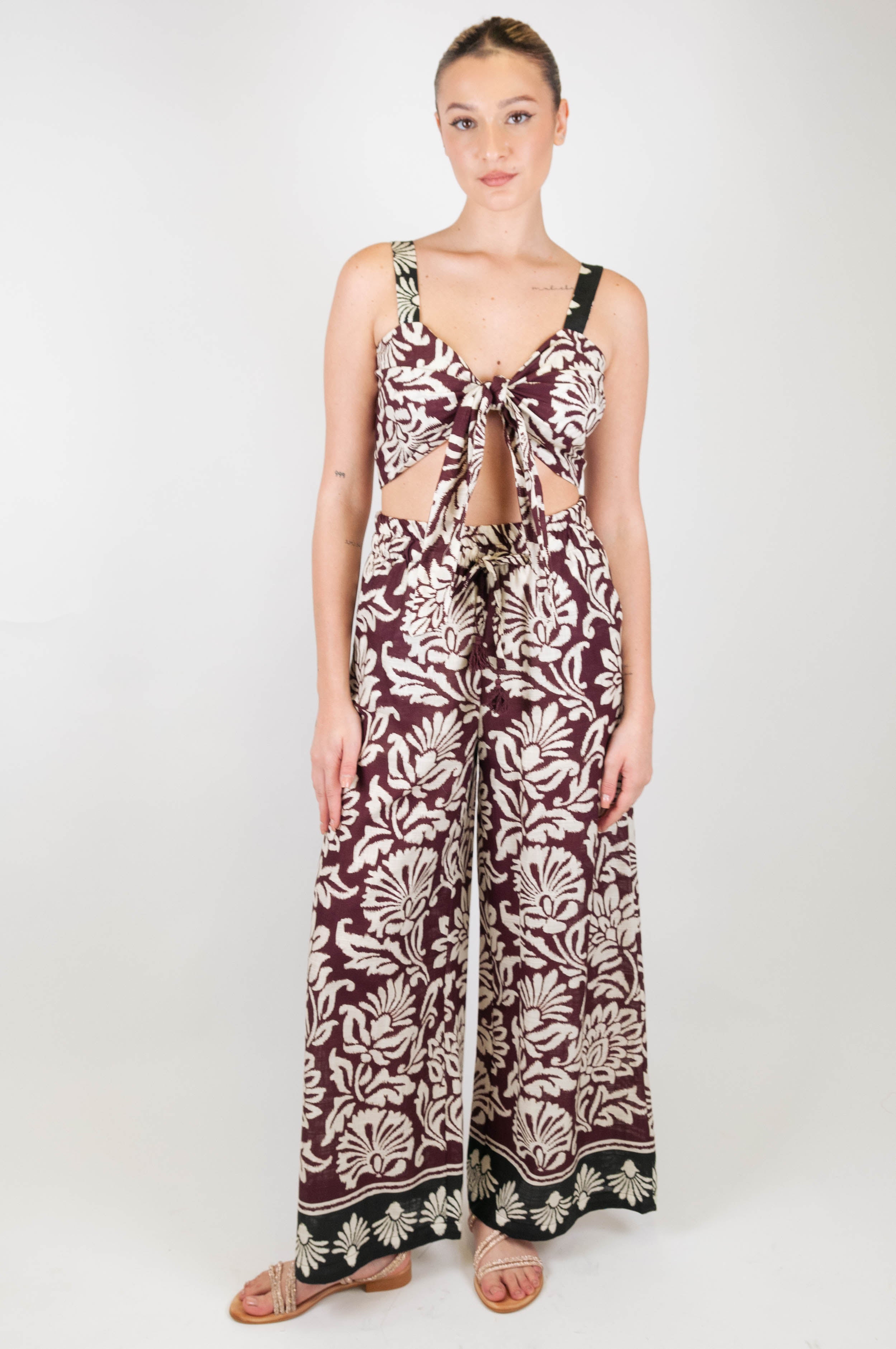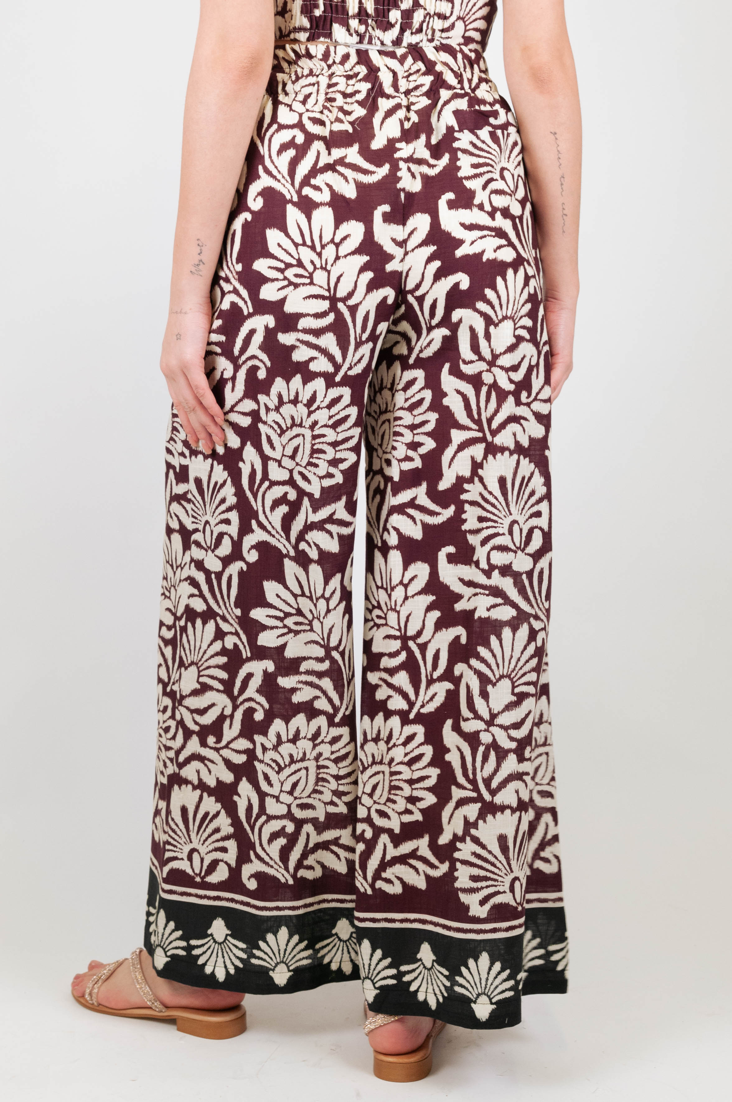 Motel - Pantalone palazzo fantasia floreale con coulisse e fondo a contrasto