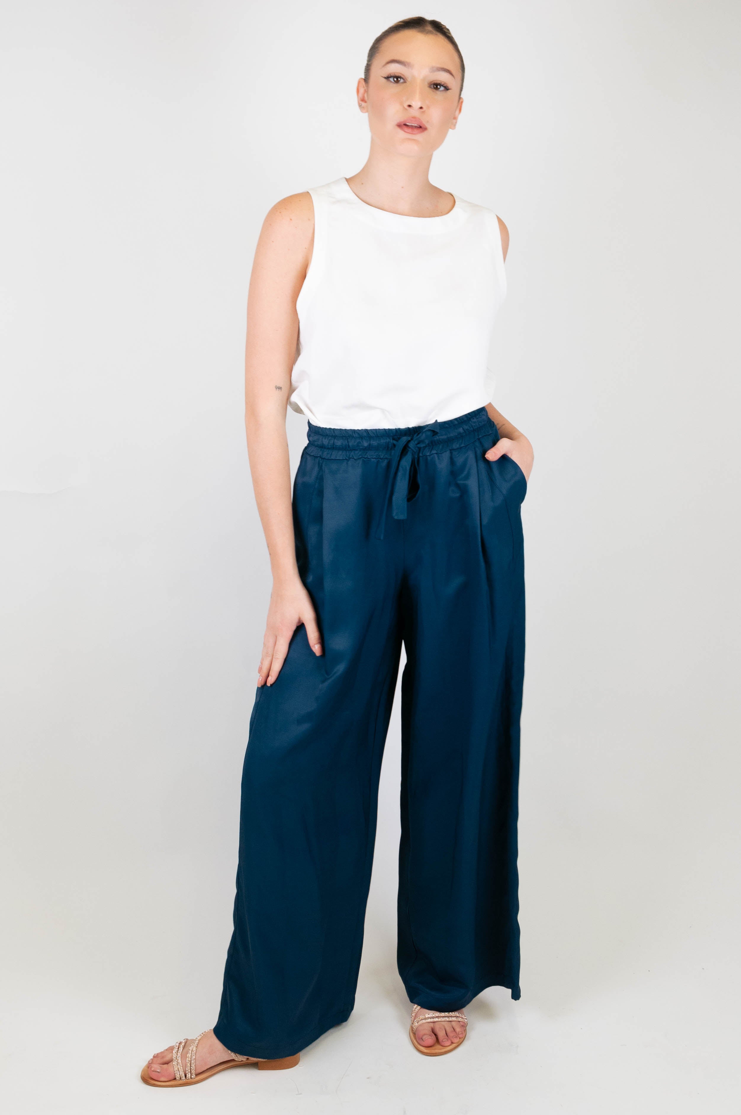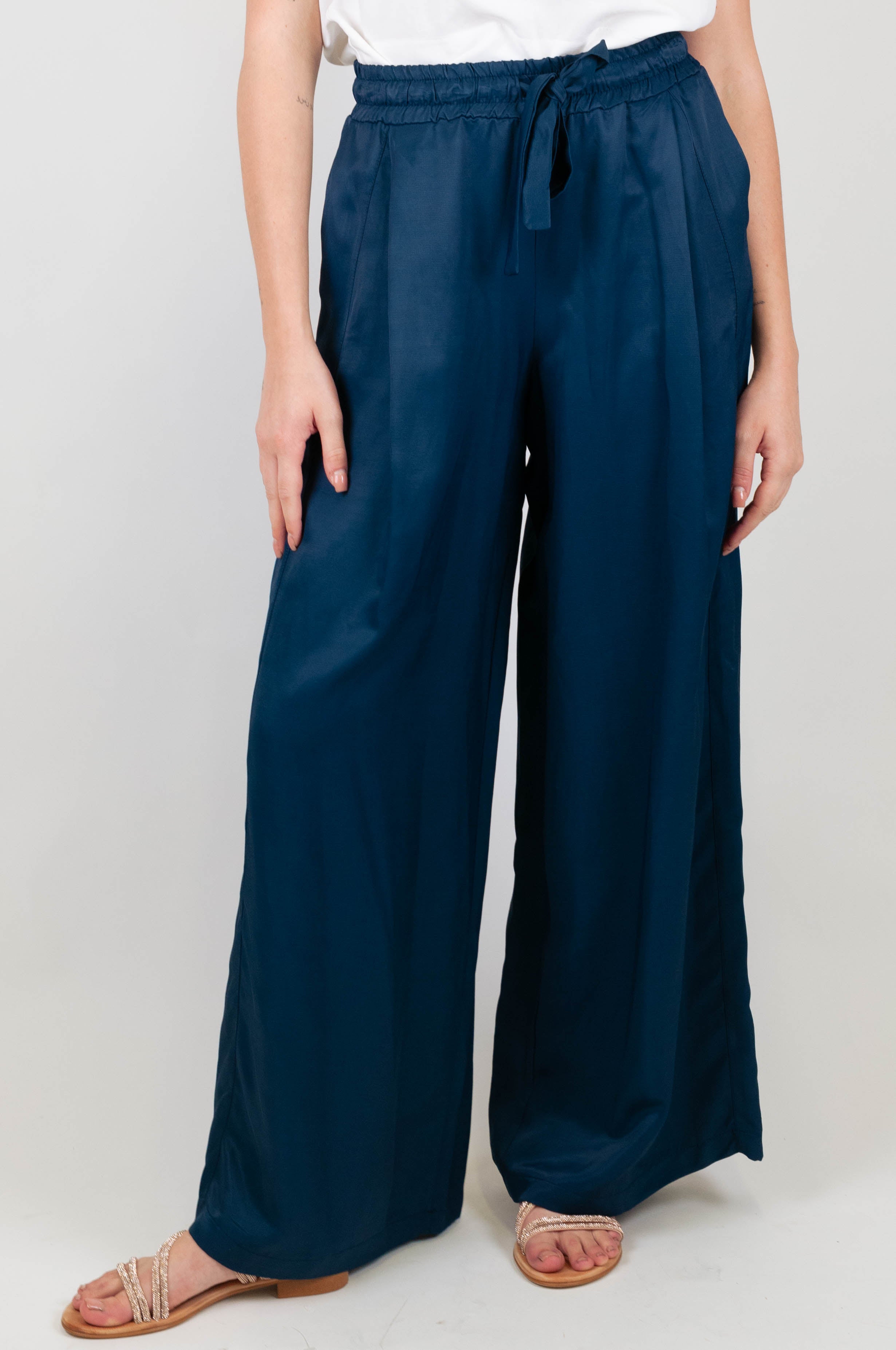 Pantalone palazzo in misto lino con coulisse Motel. Composizione: 77%VI 23%LI