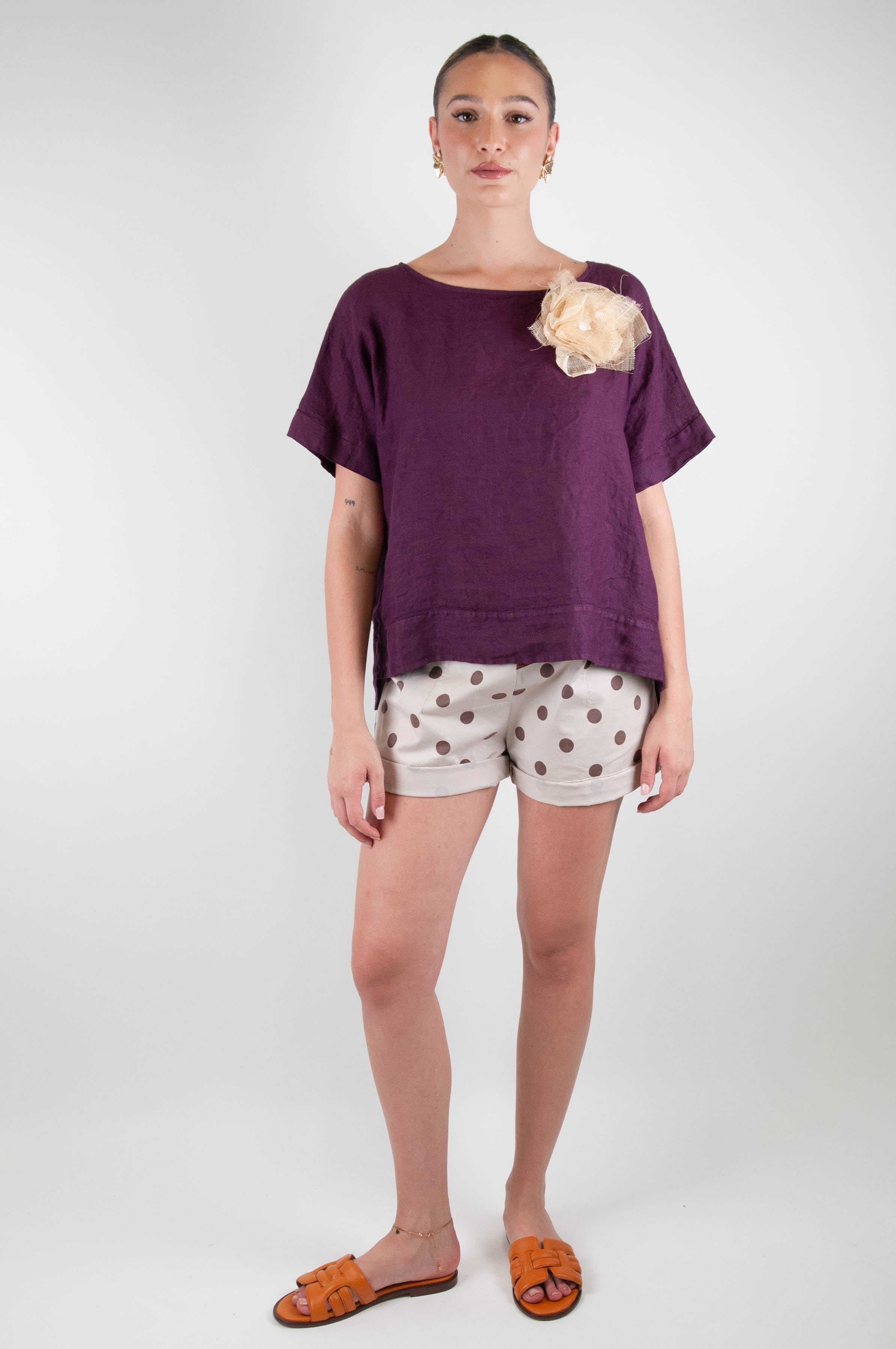 Shorts fantasia pois con risvolto sul fondo motel. Composizione: 97%CO 3%EA