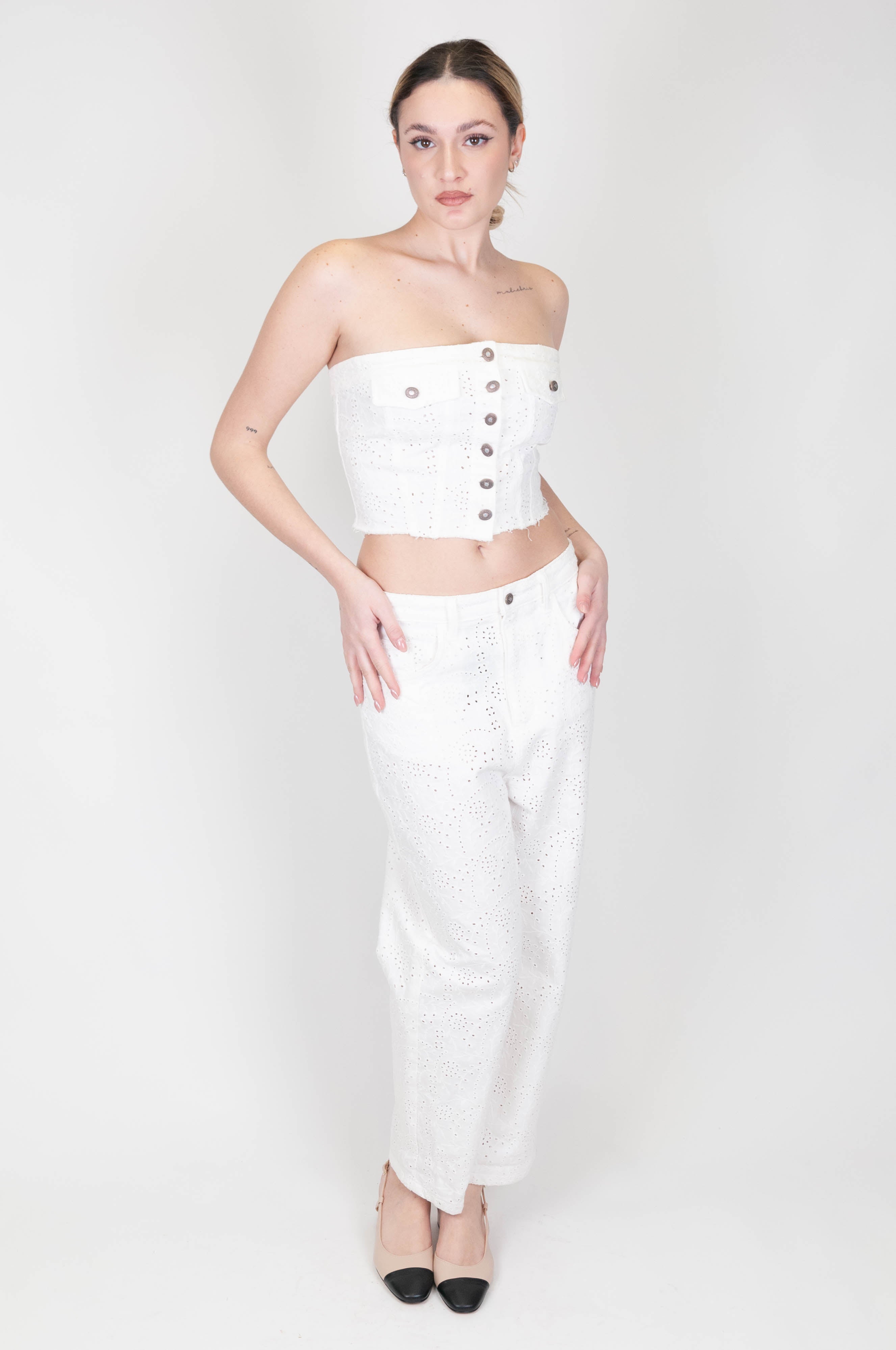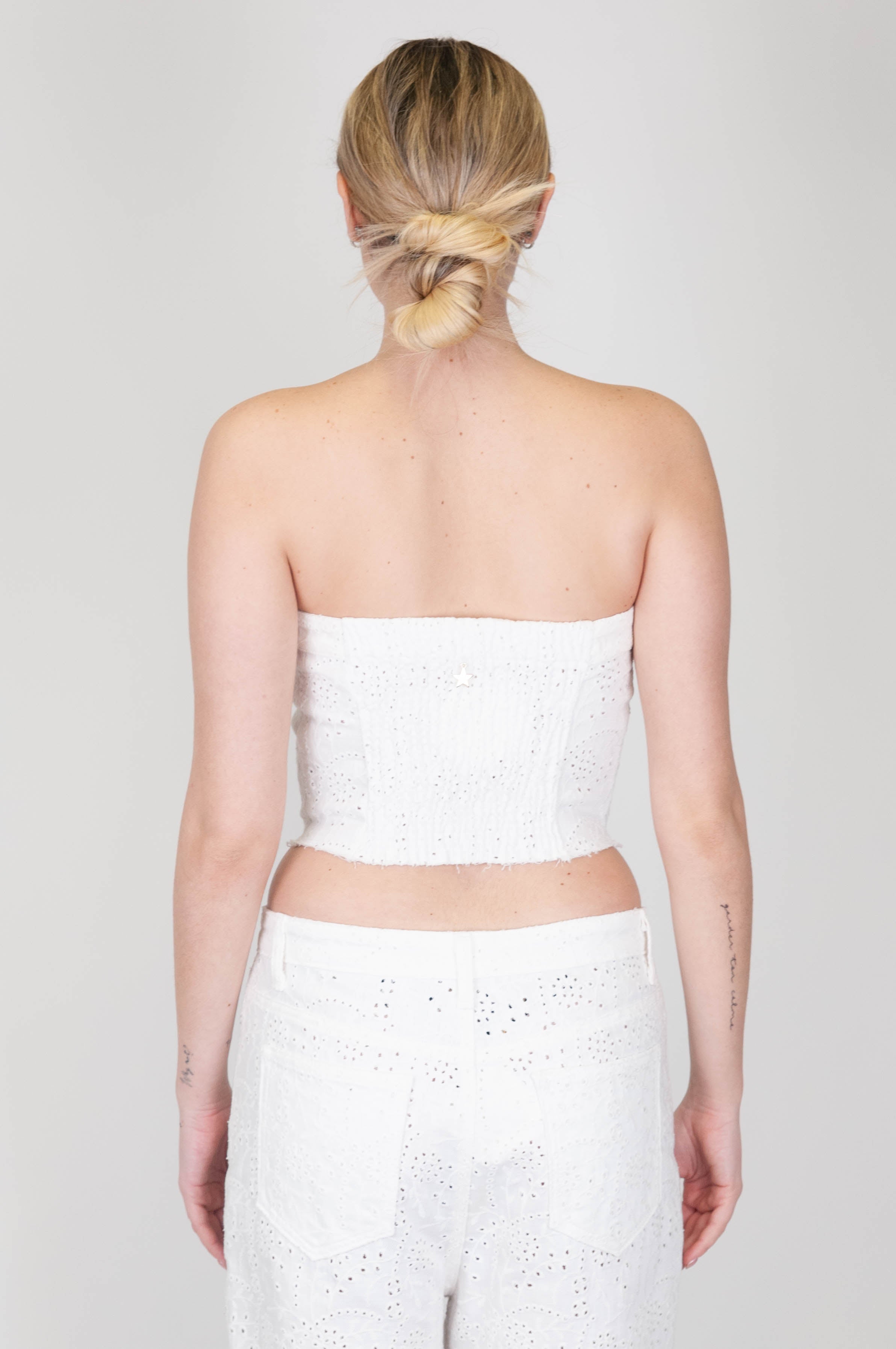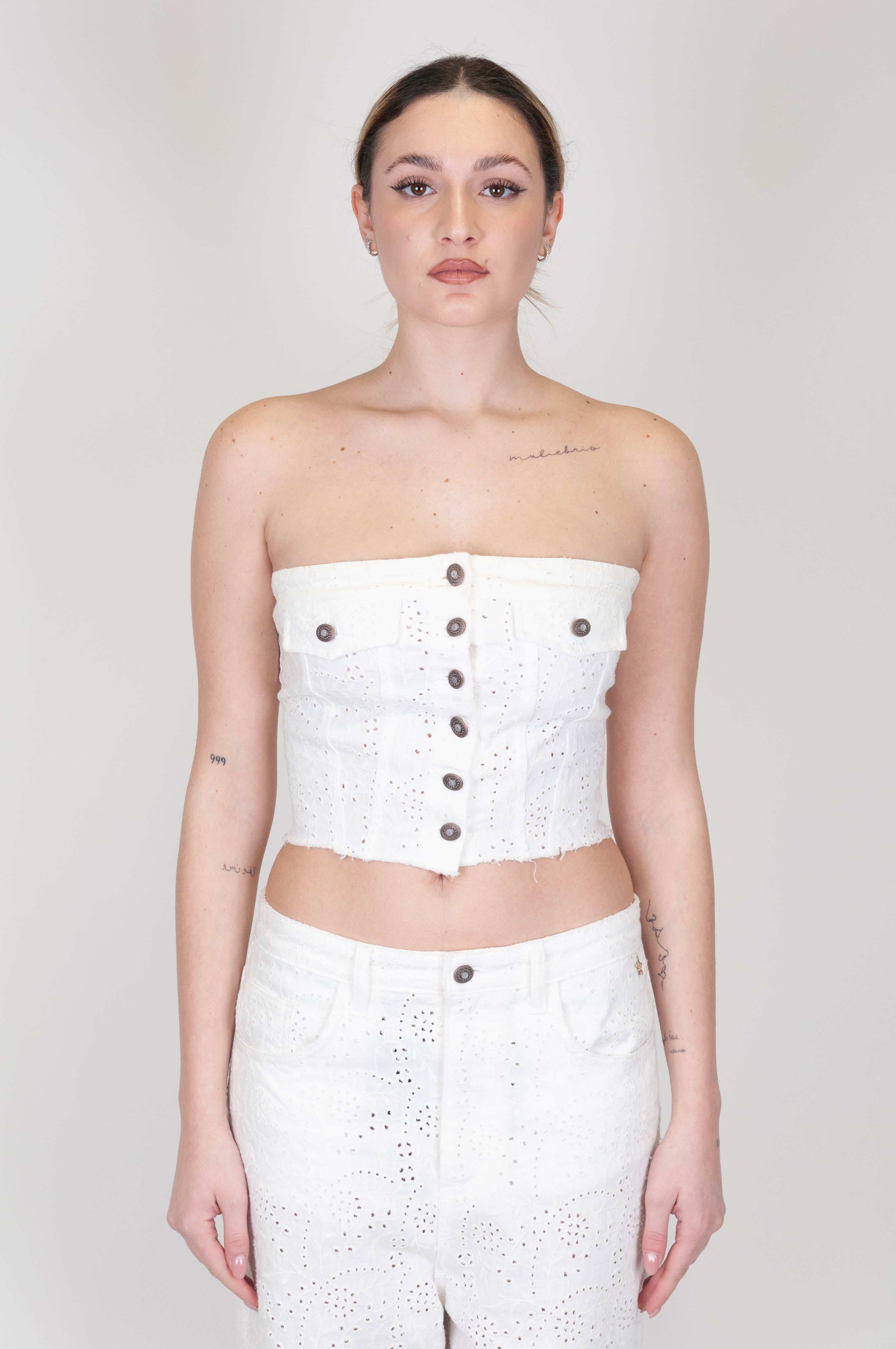 Souvenir - Top a fascia in jeans pizzo sangallo