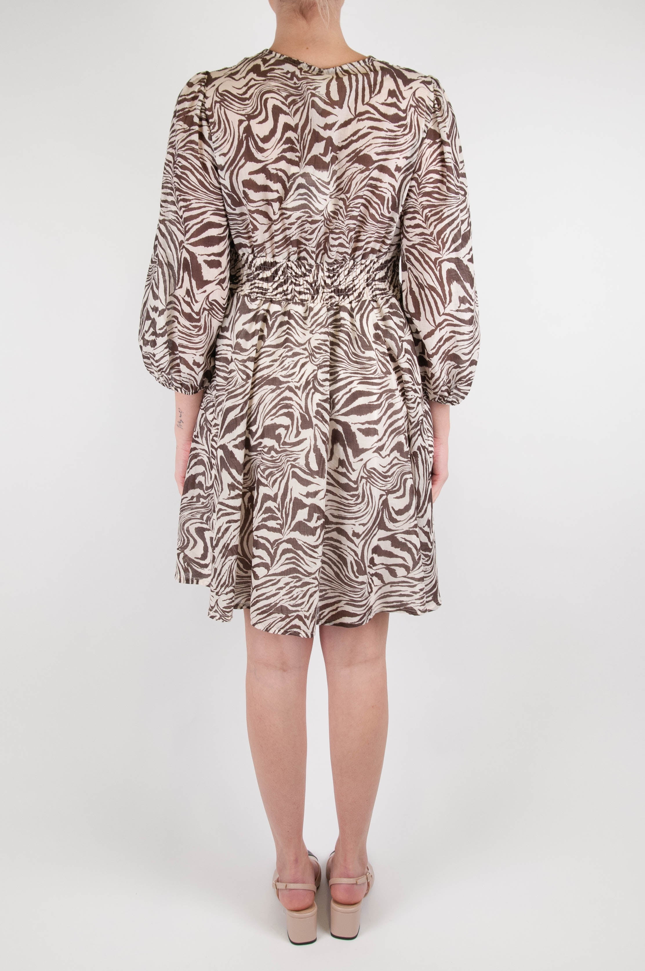 Tensione in - Abito corto fantasia animalier tigrata in mussola di cotone