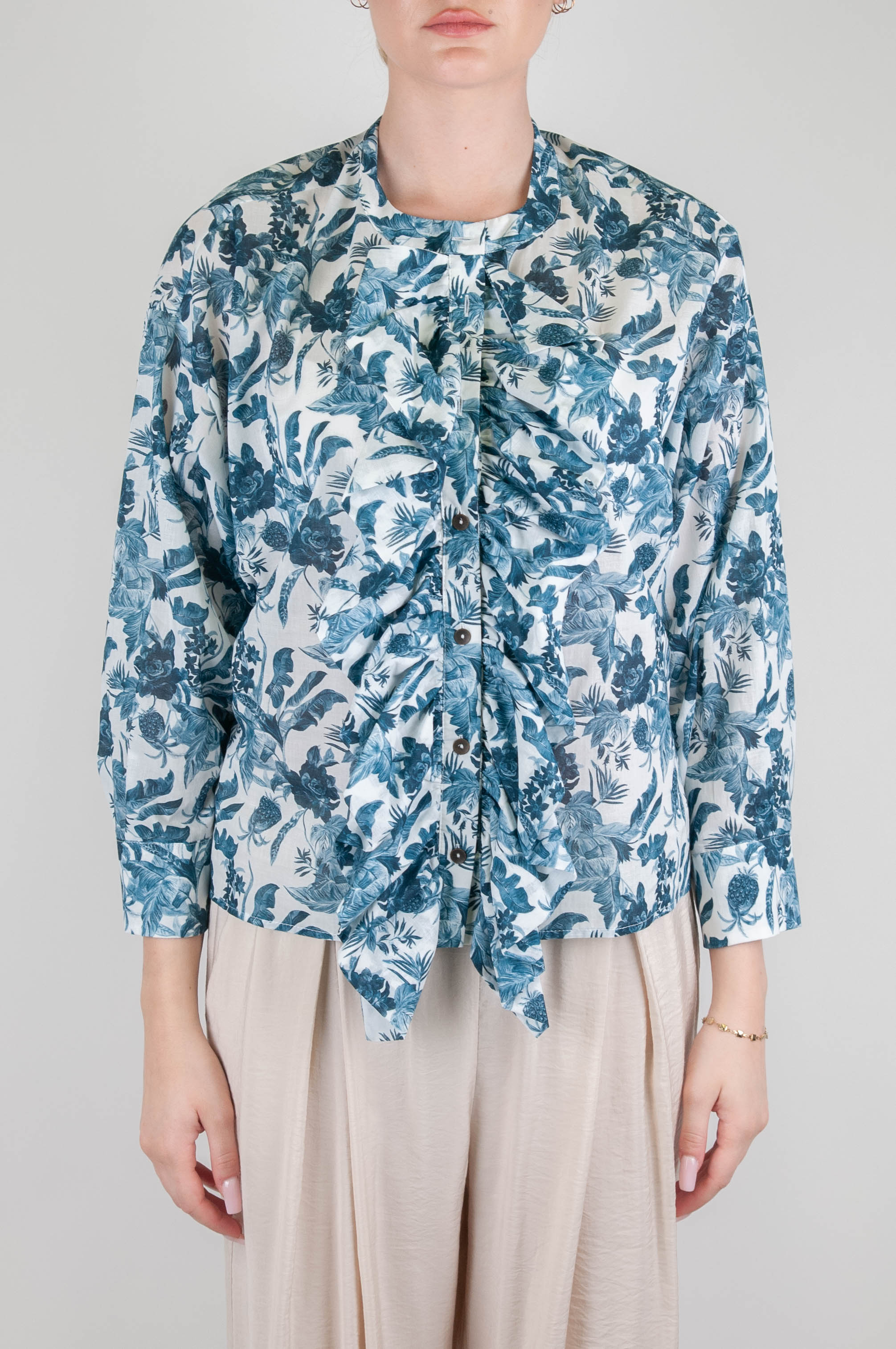 Tensione in - Camicia fantasia in mussola di cotone con rouches sul fronte