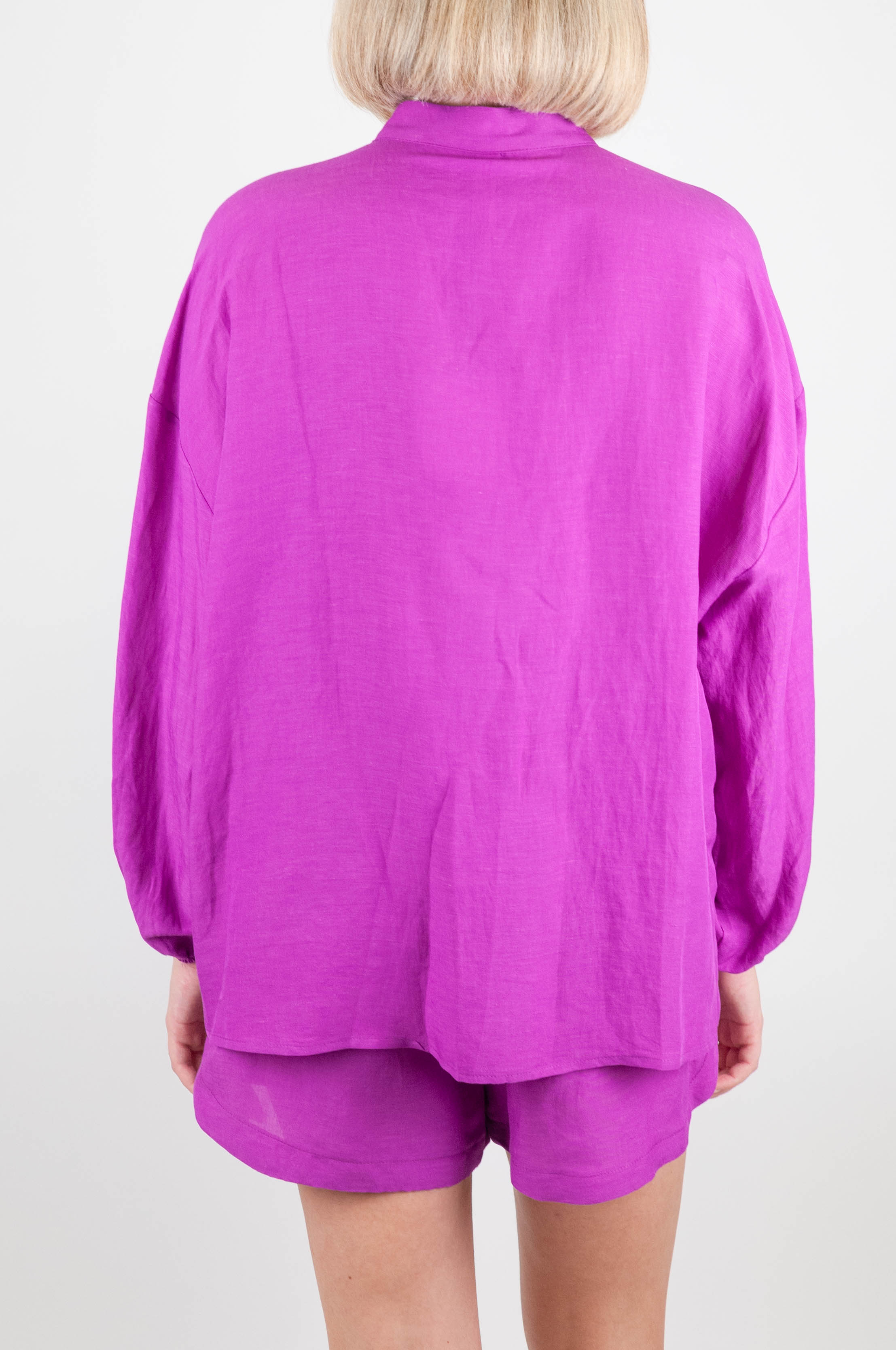 Camicia in misto viscosa e lino Tensione in, con collo coreano, manica lunga e vestibilità comoda. Composizione: 60%VI 40%LI