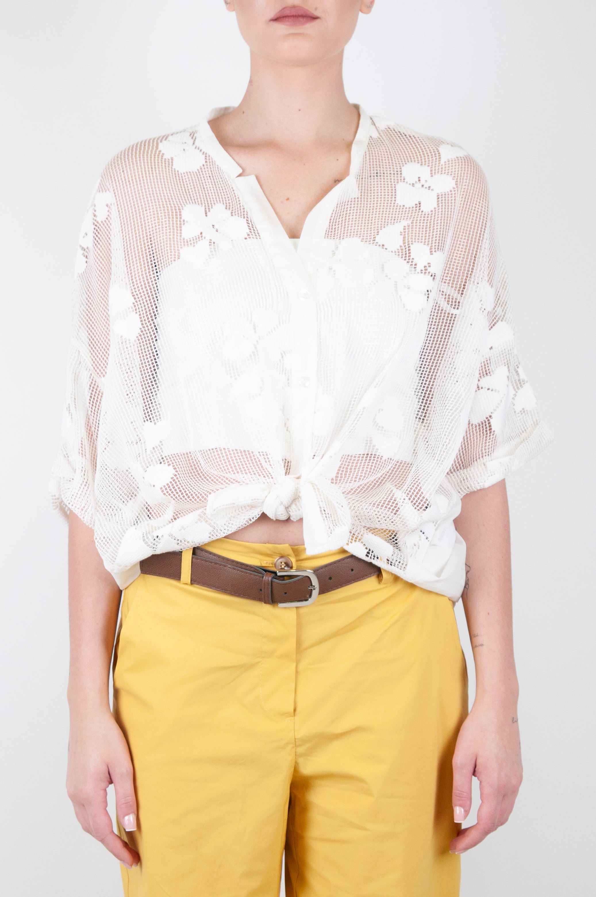 Tensione in - Camicia traforata con ricami floreali con manica tre quarti