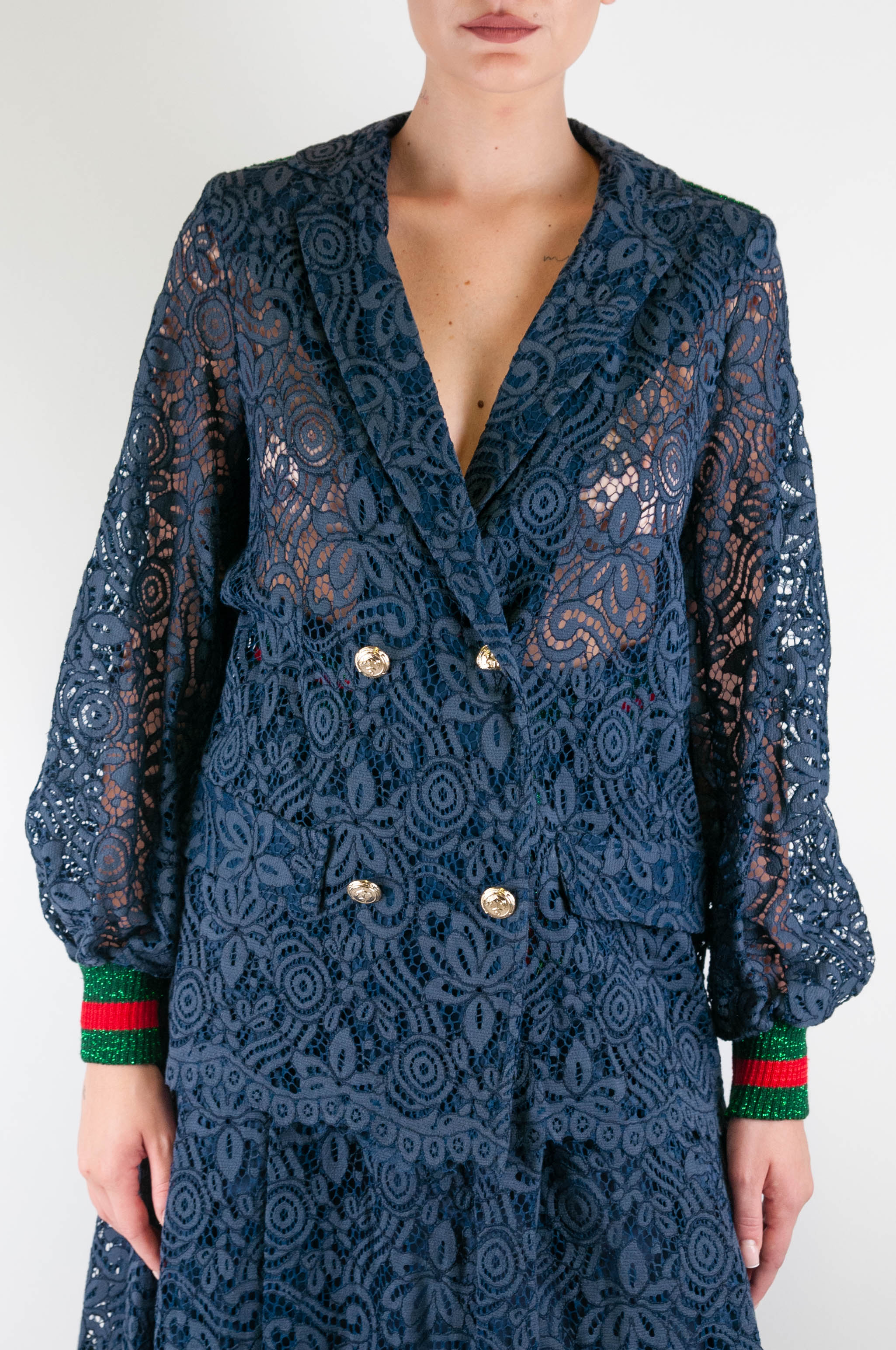Tensione in - Giacca doppiopetto in pizzo con profili a contrasto