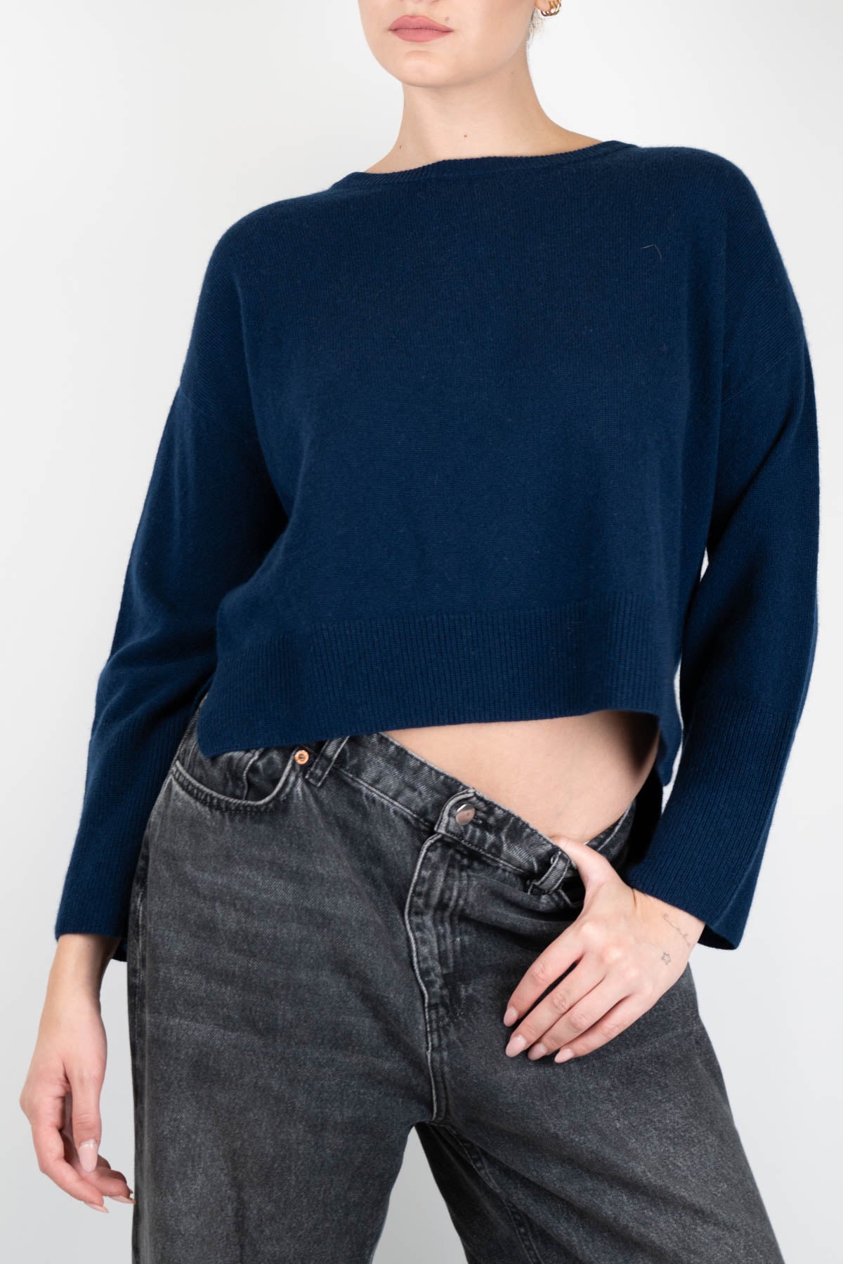 Tensione in - Maglia girocollo crop in 100% puro cashmere