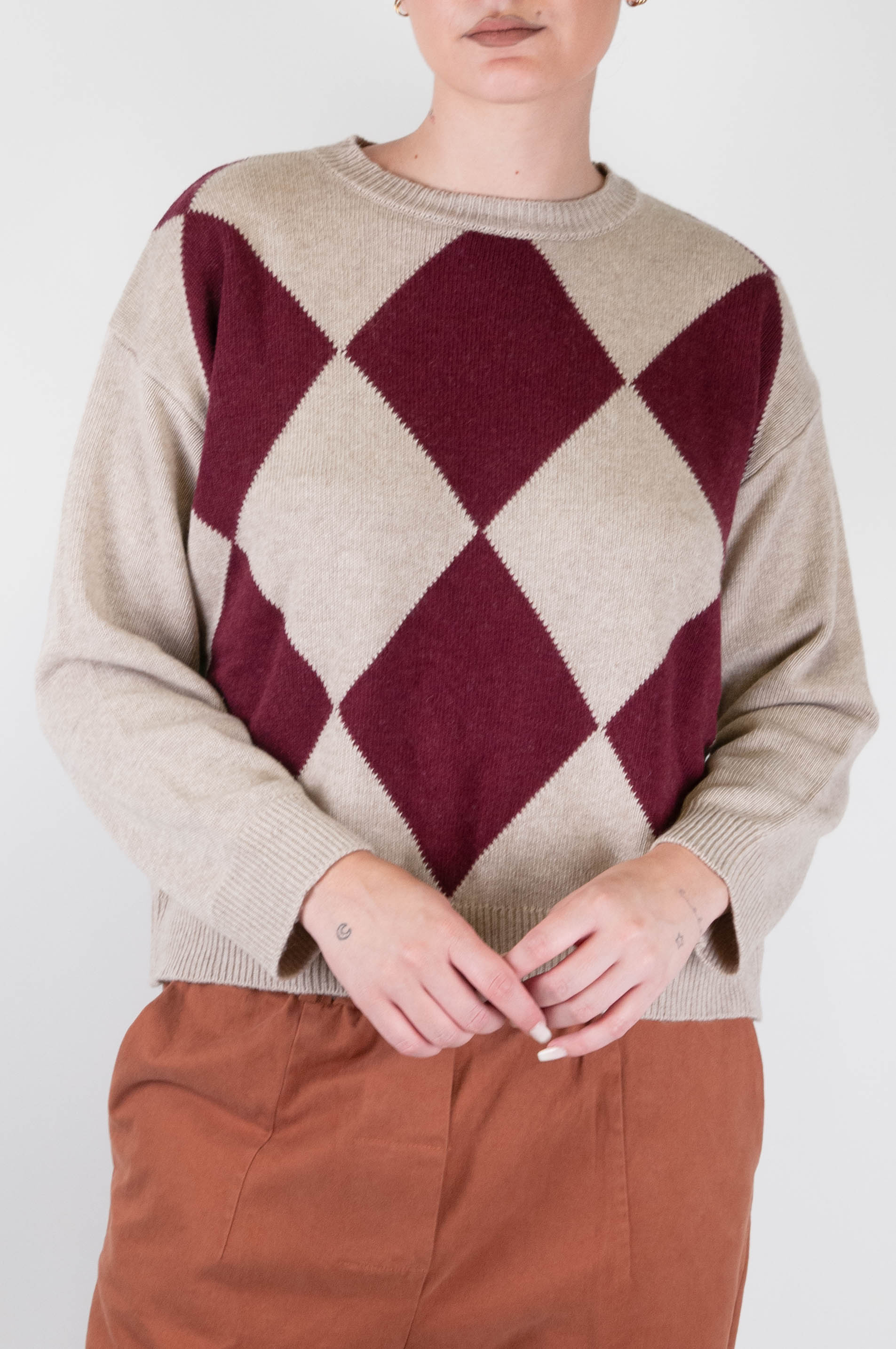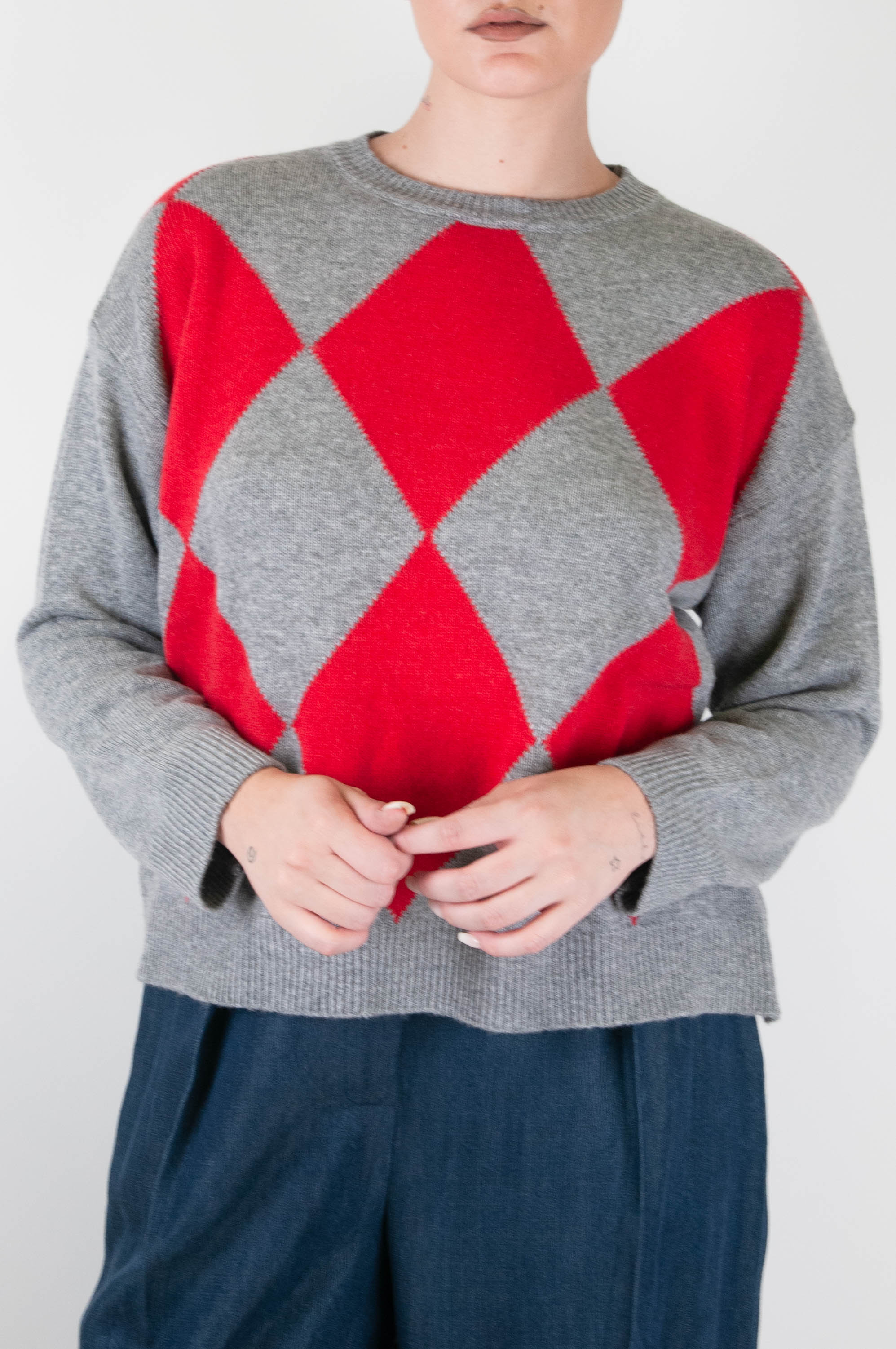 Tensione in - Maglia girocollo fantasia rombi in misto lana e cashmere