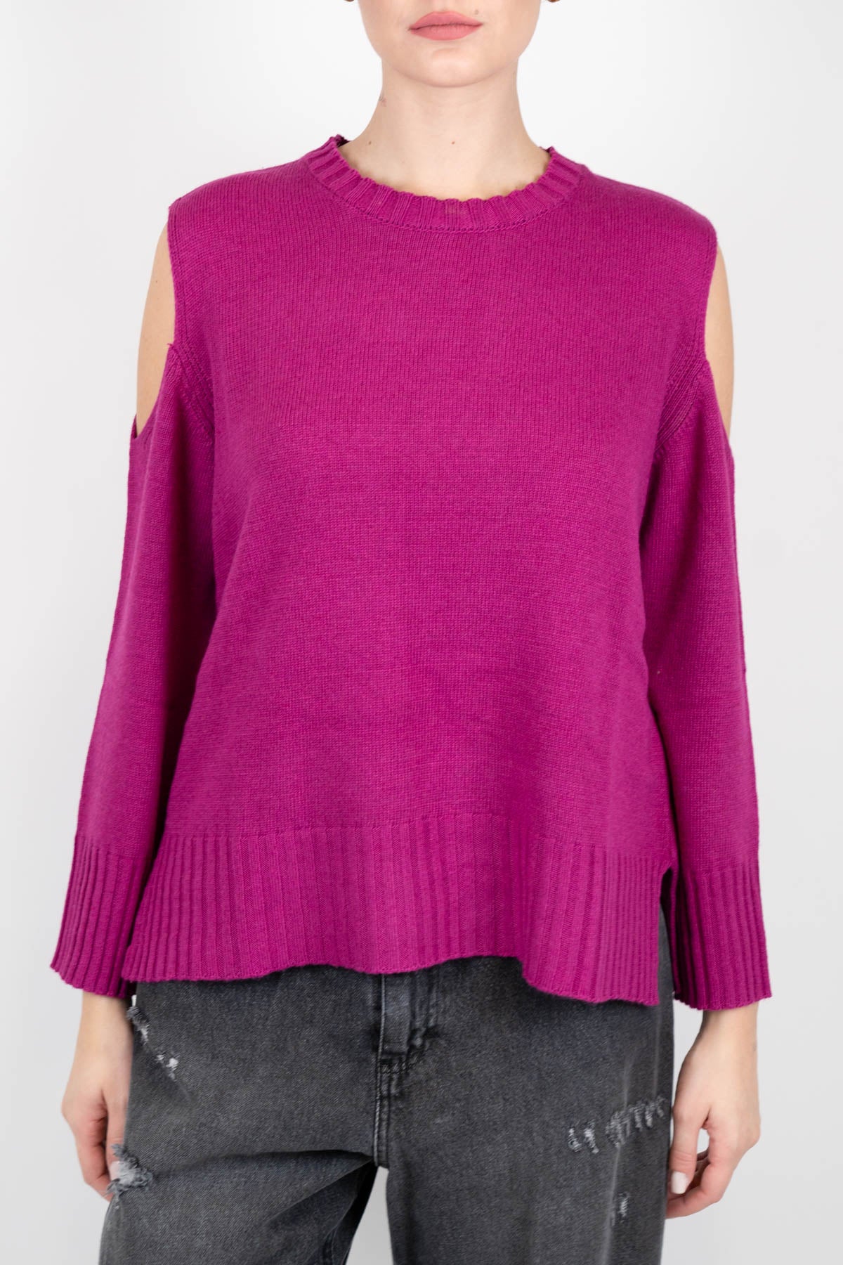 Tensione in - Maglia girogollo cut-out spalle in misto lana e cashmere con spacchetti