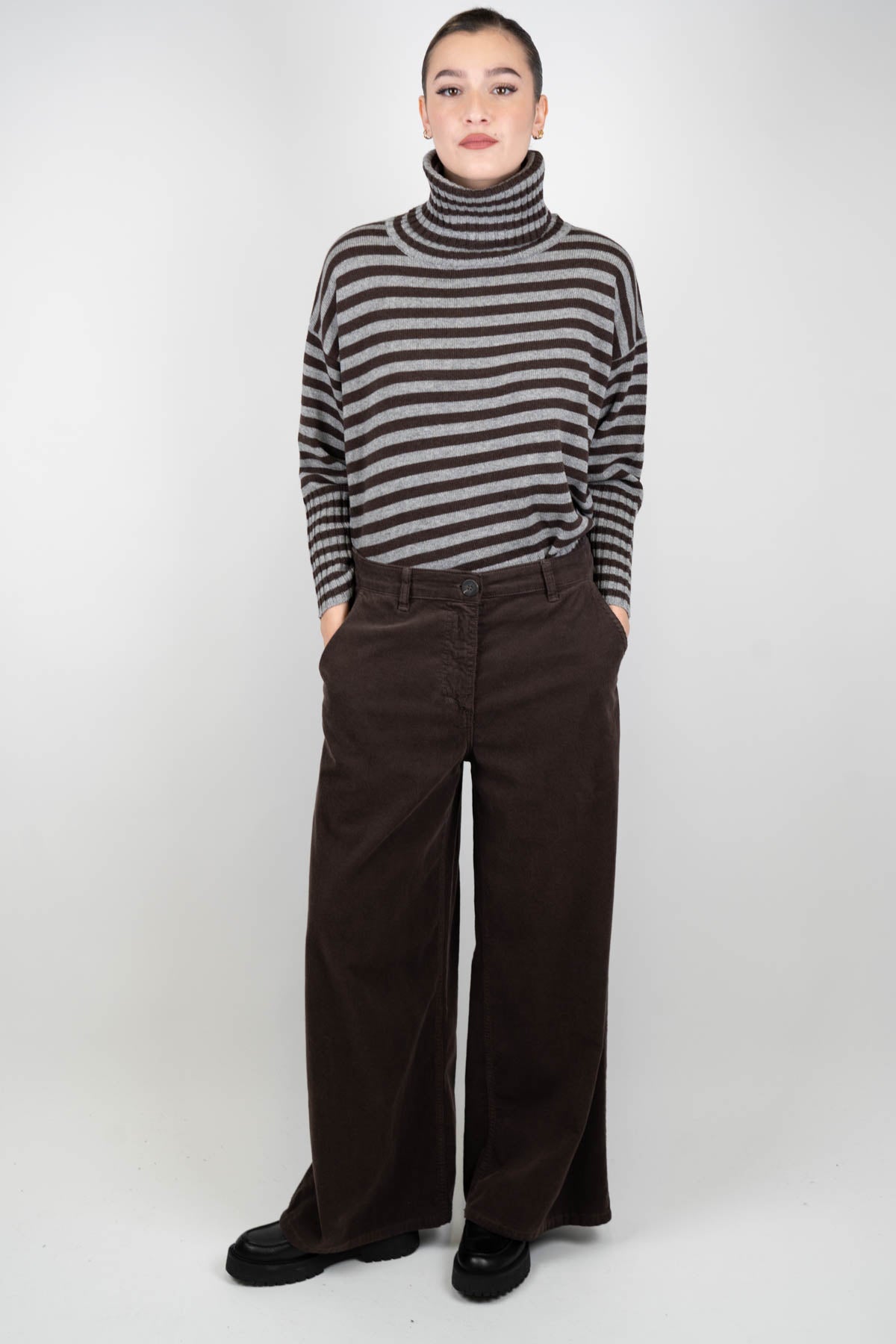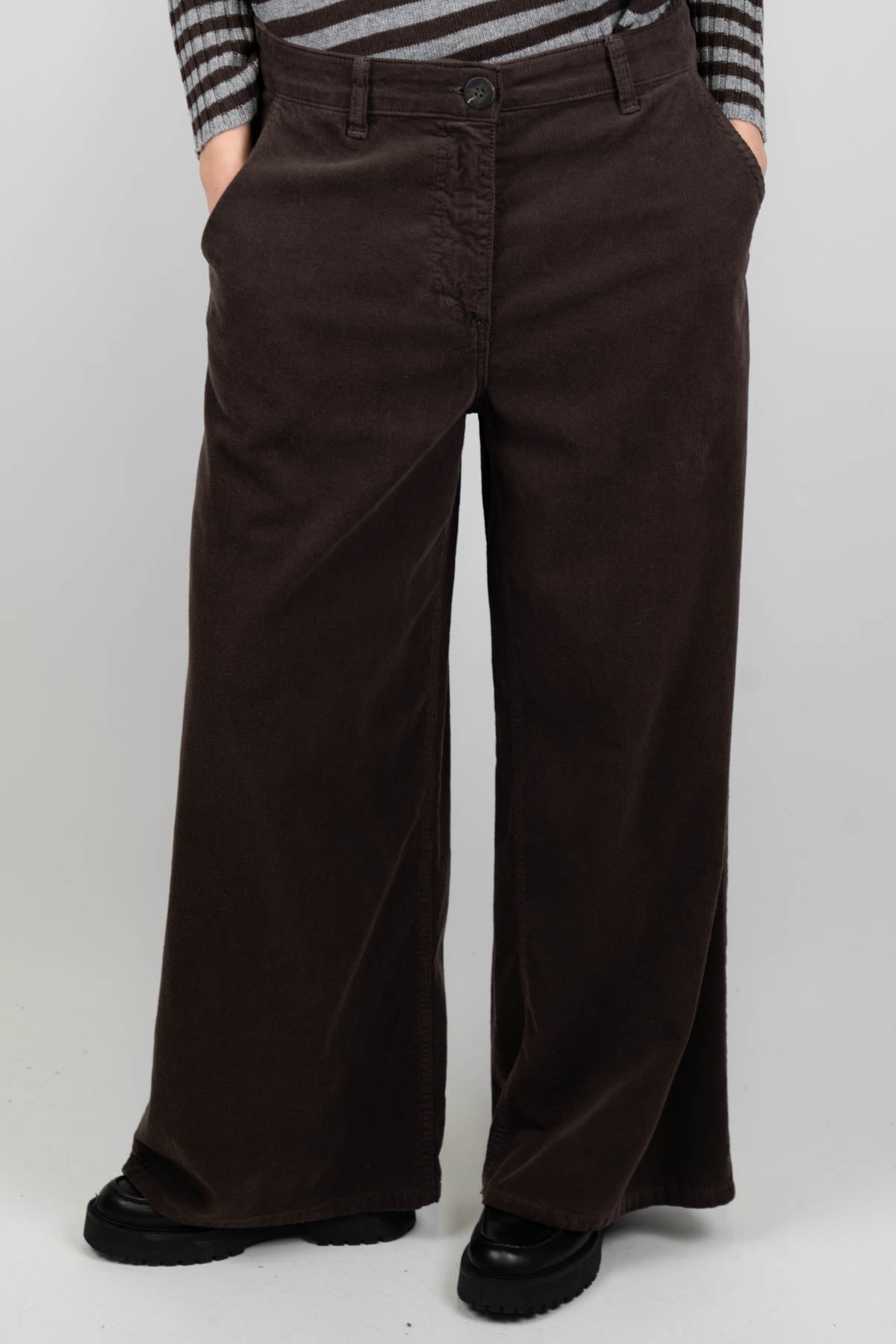 Tensione in - Pantalone palazzo in velluto millerighe