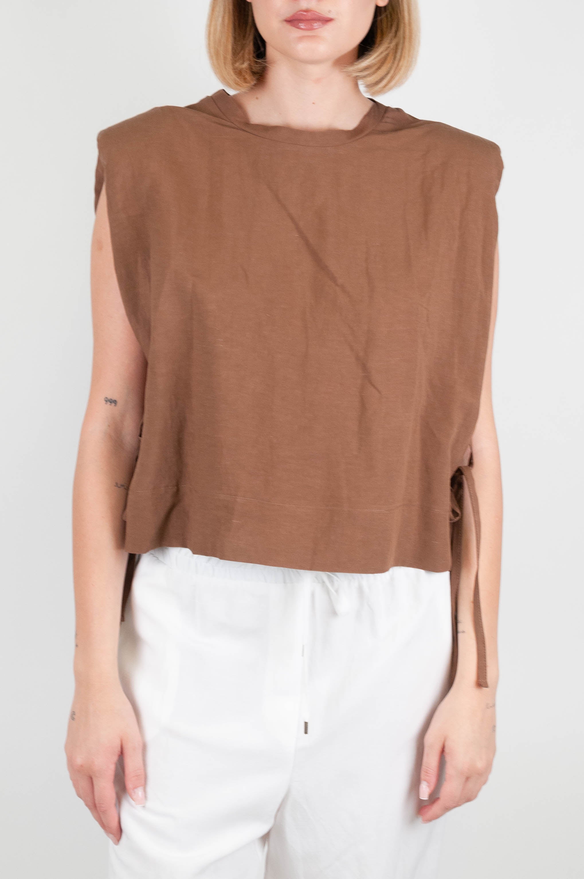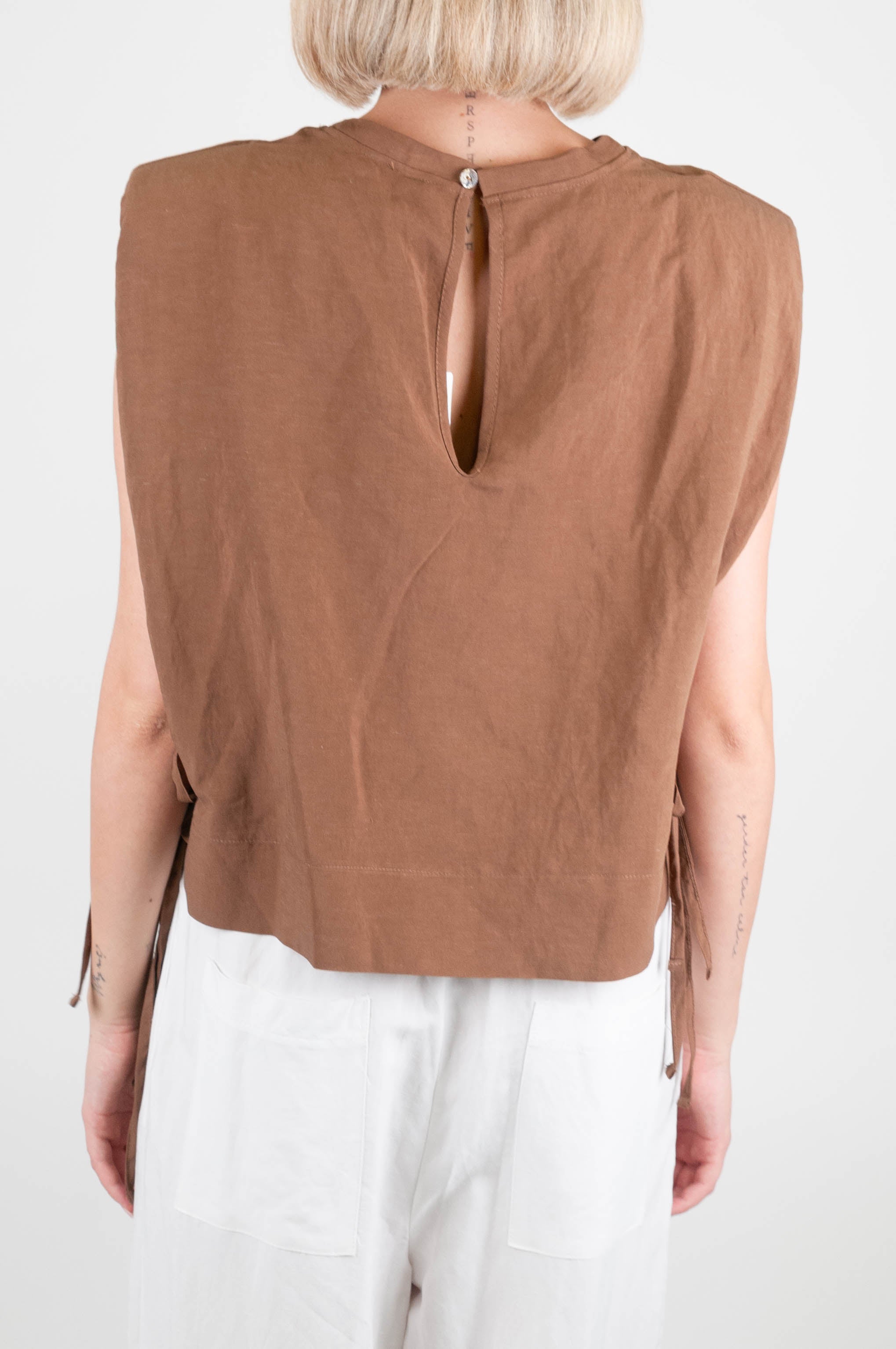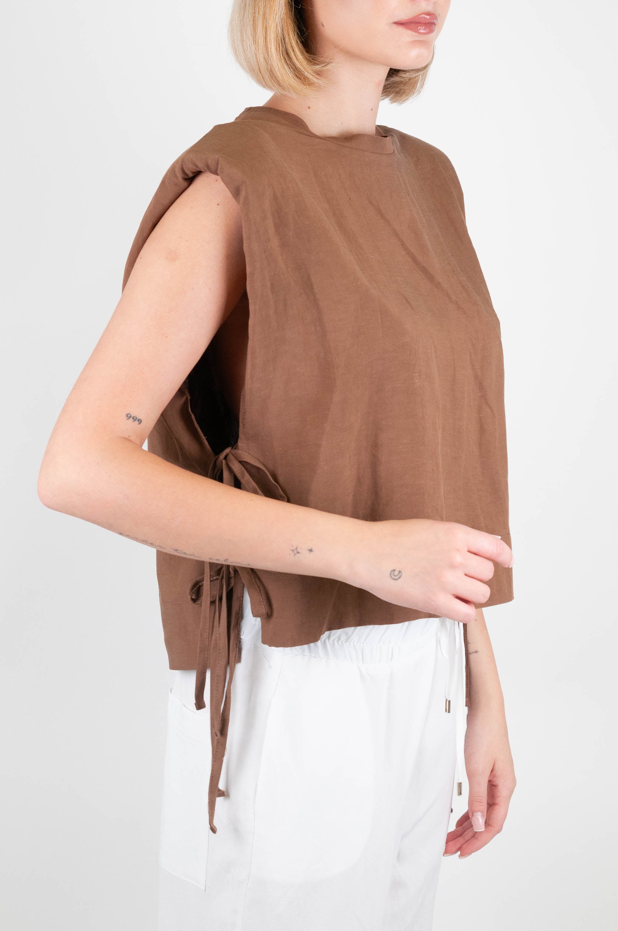 Tensione in - Top in misto lino con spalline e fiocchi laterali